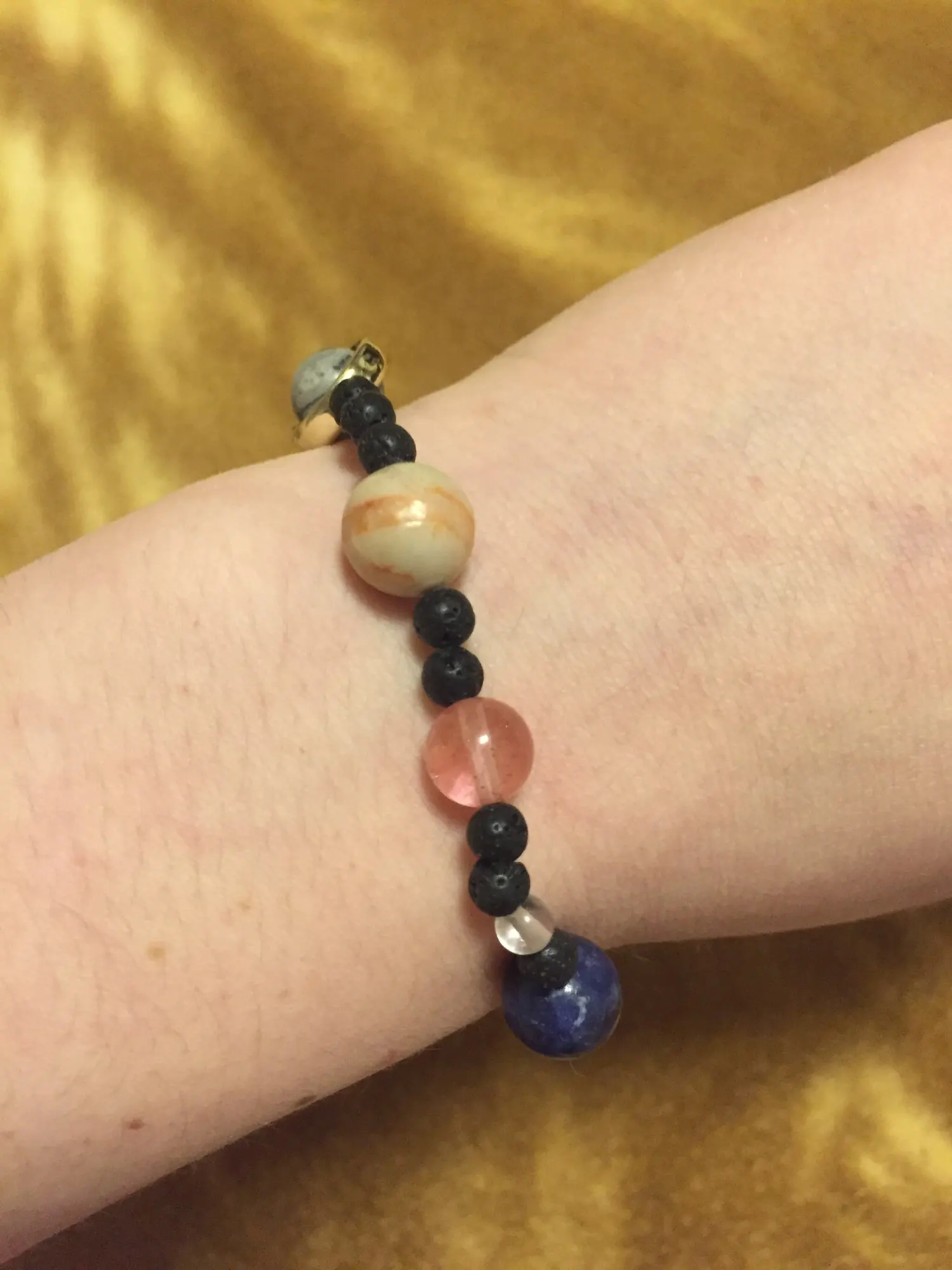 Мой парень купил мне это для S. Валентина ~ это восхитительно, мне нравится этот браслет! Сначала я думал, что какая-то планета отсутствует, но на самом деле нет, это потому, что она не очень большая, в любом случае она идеально подходит для моего запястья. Также доставка была быстрой.