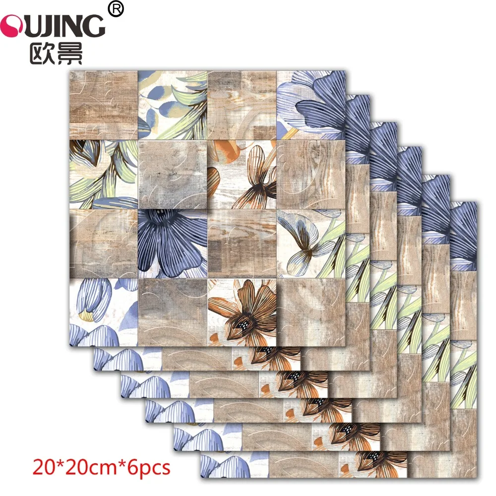 Настенная Наклейка в европейском стиле с цветочным узором для плитки, 20*20 см * 6 шт., декоративные обои для кухонной плитки, виниловые художественные наклейки на стены