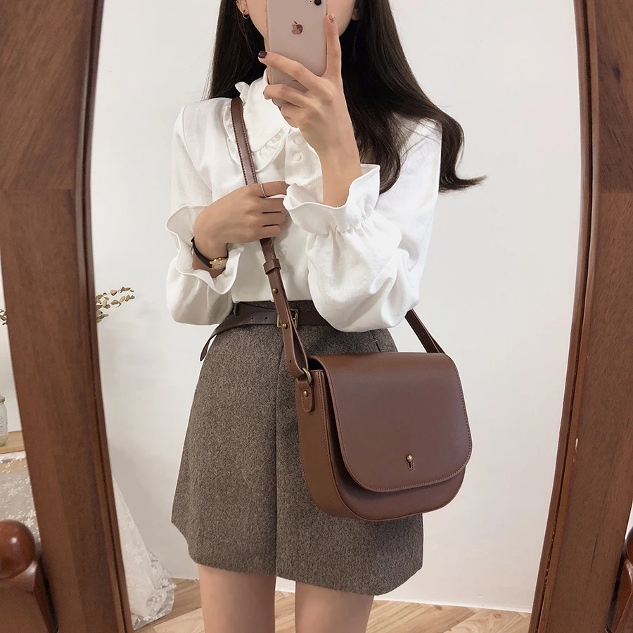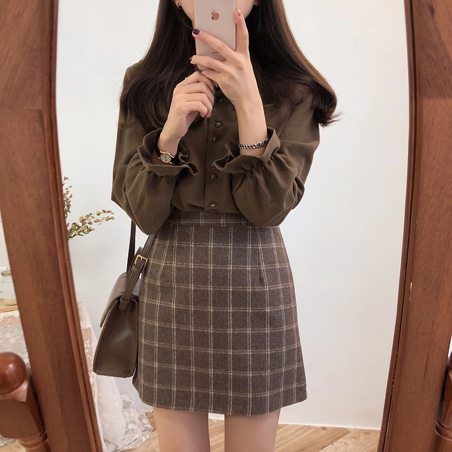 Базовые Рубашки Блузки Лидер продаж 2019 женская мода дизайн корейский консервативный стиль расклешенный рукав Питер Пэн воротник белая рубашка на пуговицах