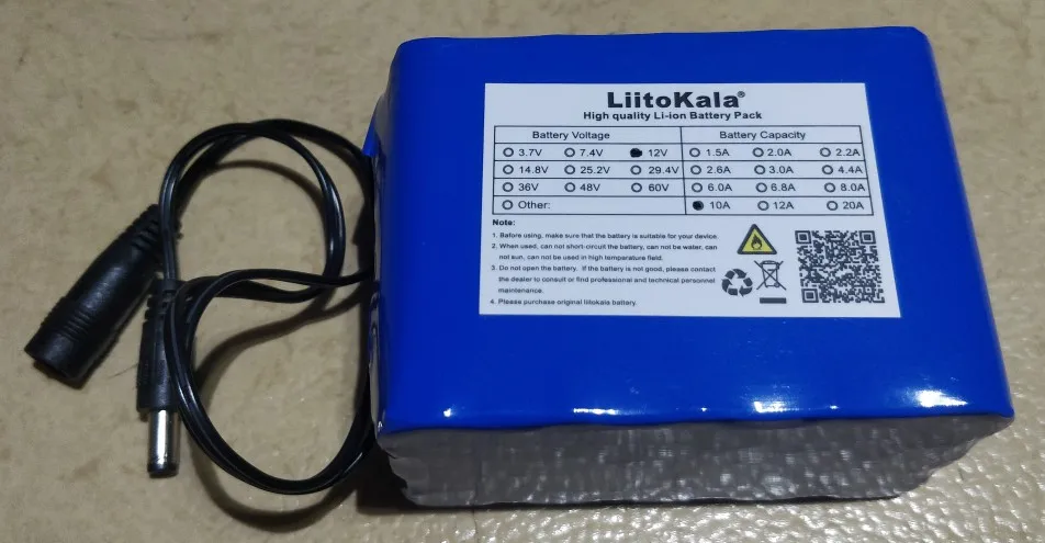 Аккумулятор LiitoKala, 100%, 12 В, 10 Ач, 18650, литиевый, 10000 мА ч