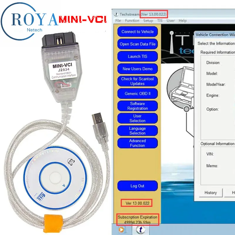 MINI VCI для TIS Techstream поддерживает диагностический sw от TIS OEM и все необходимые диагностические протоколы связи (с 1996 года).