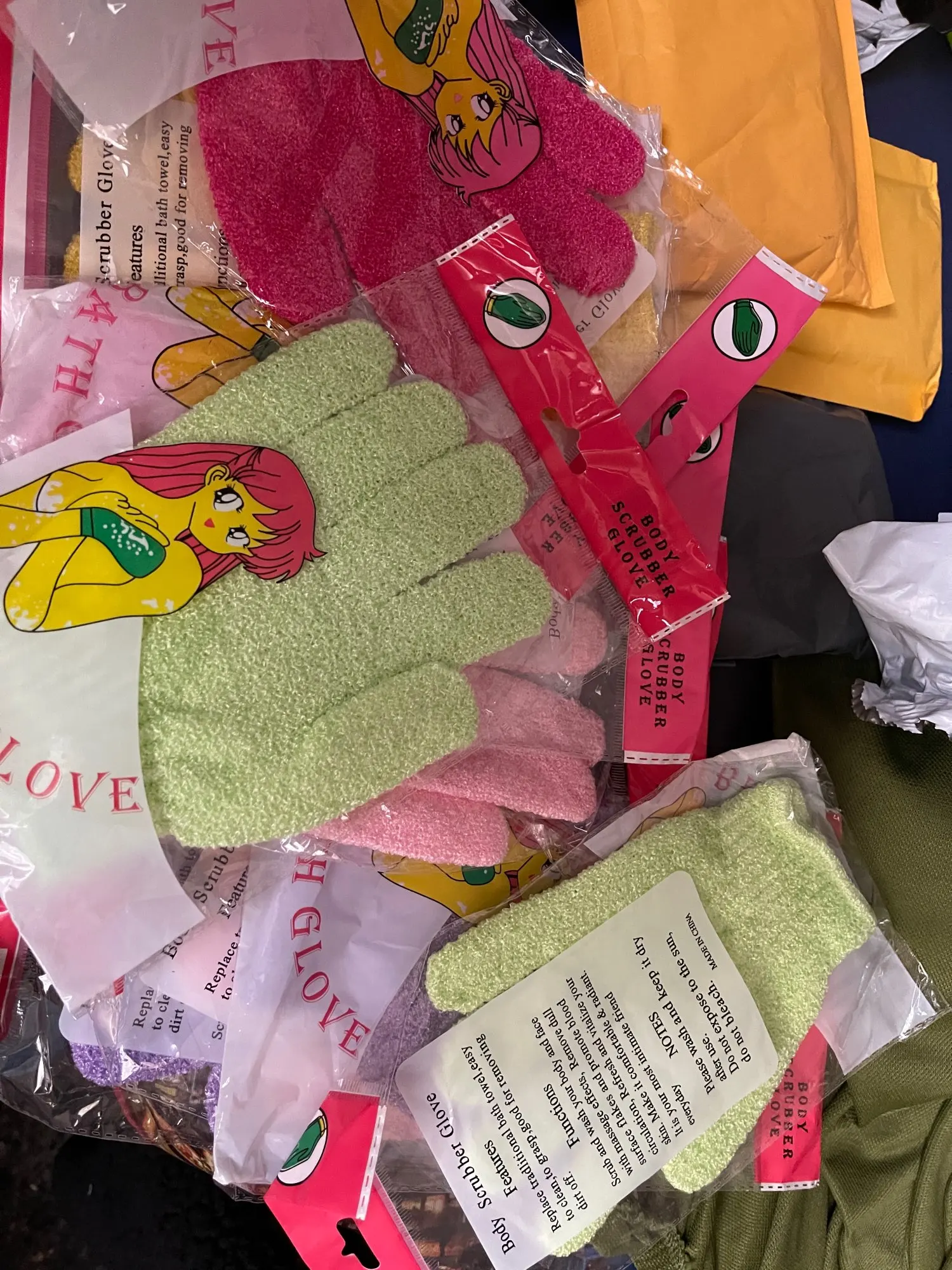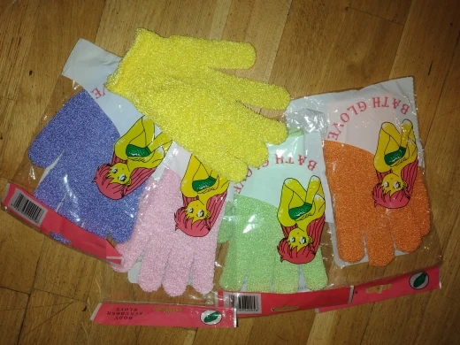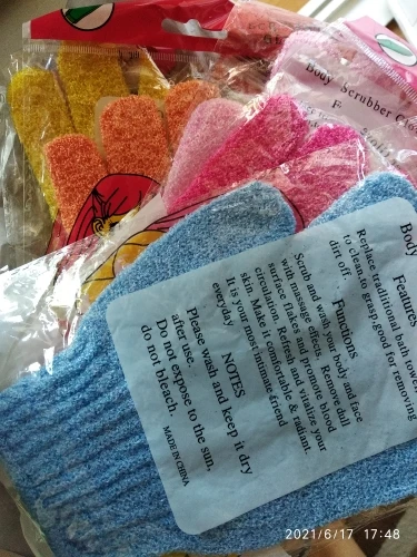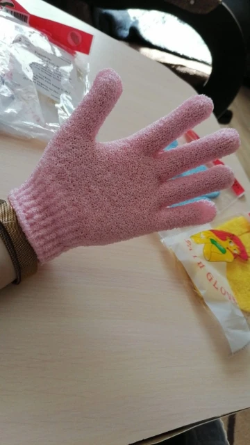 доставка -неделя в общей посылке ( с товарами от других продавцов. Это так удобно).Цена в Ашане-50р за одну перчатку. Цвета спокойные. Сегодня опробировала сиреневую перчатку, расползлась. Ну еще на несколько процедур хватит. А вот качество материала очень понравилось,