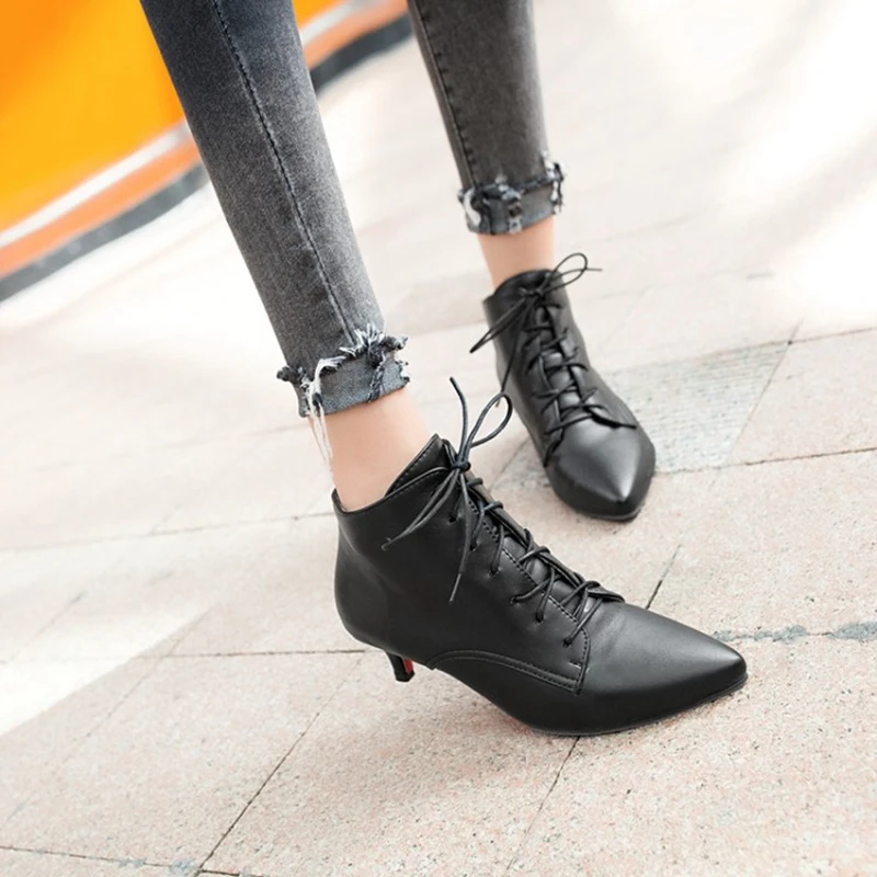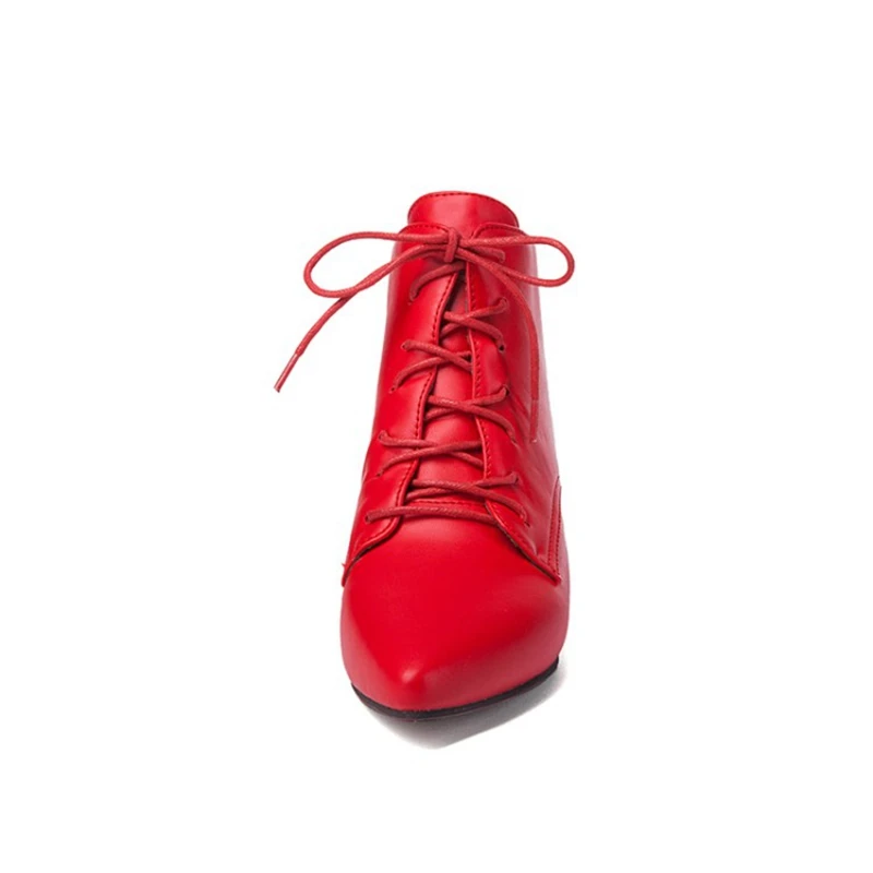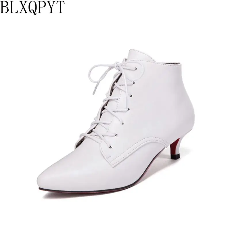 BLXQPYTпикантные женские кожаные ботильоны на тонком низком каблуке с острым носком на шнуровке; Сезон весна-осень; Женская обувь; Большие размеры 56-6