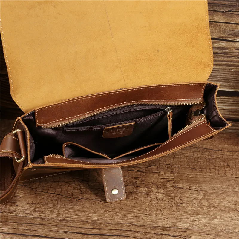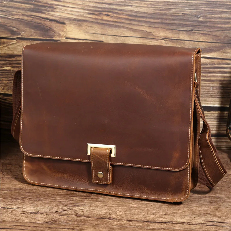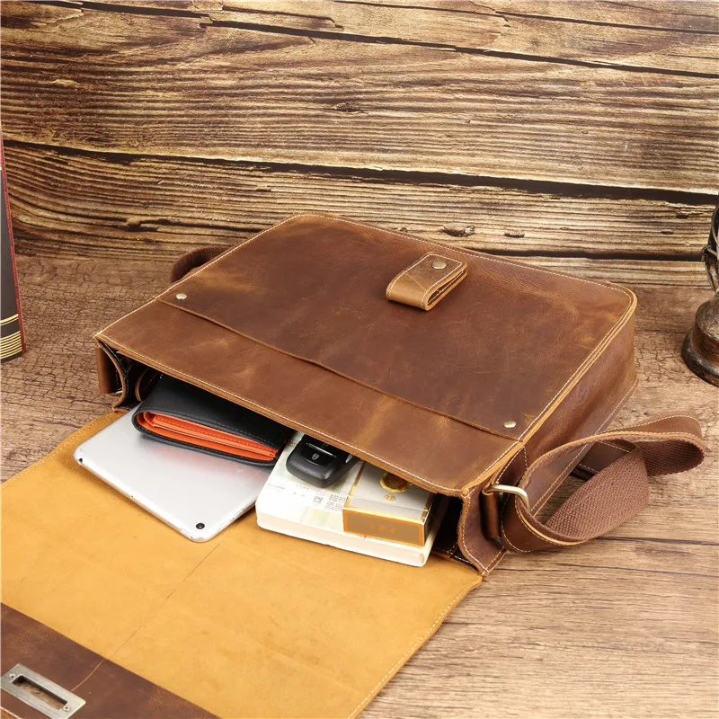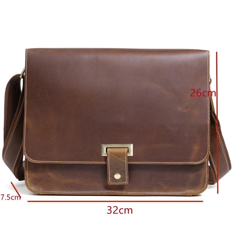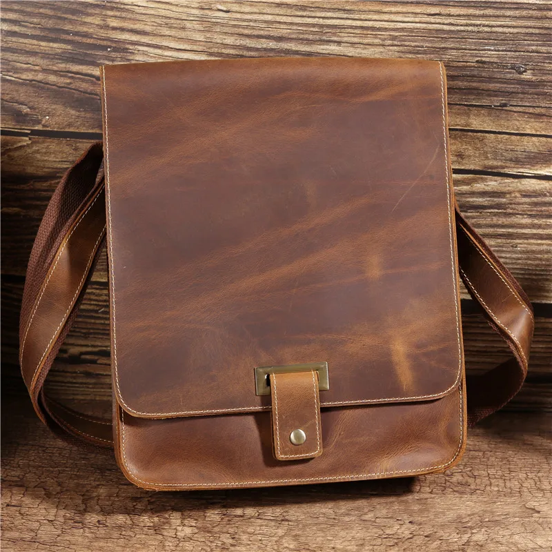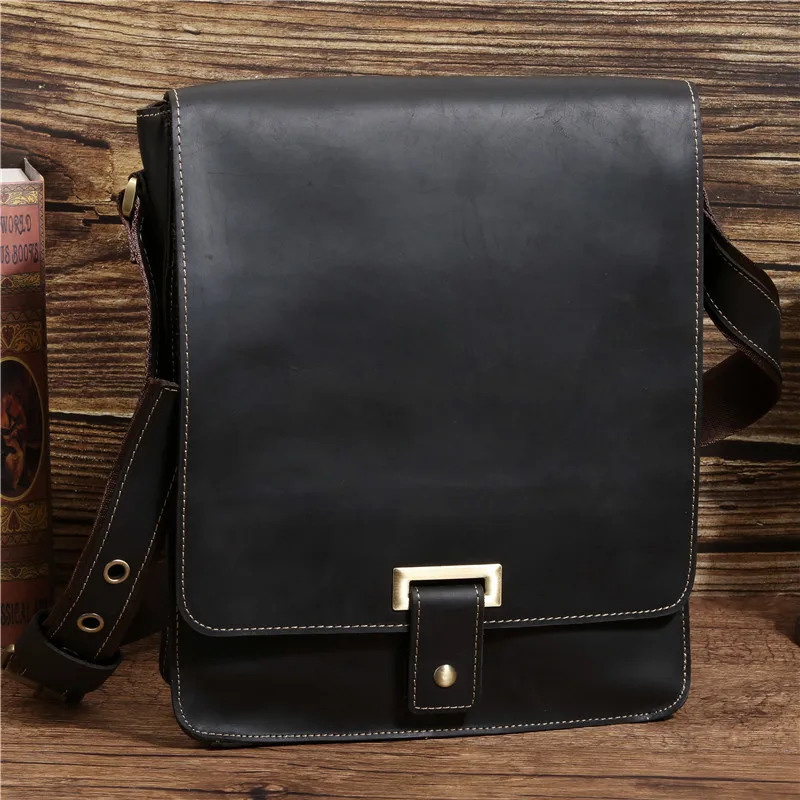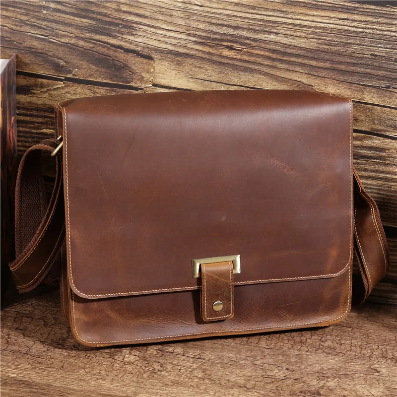 Сумка-мессенджер мужская из натуральной коровьей кожи, с клапаном