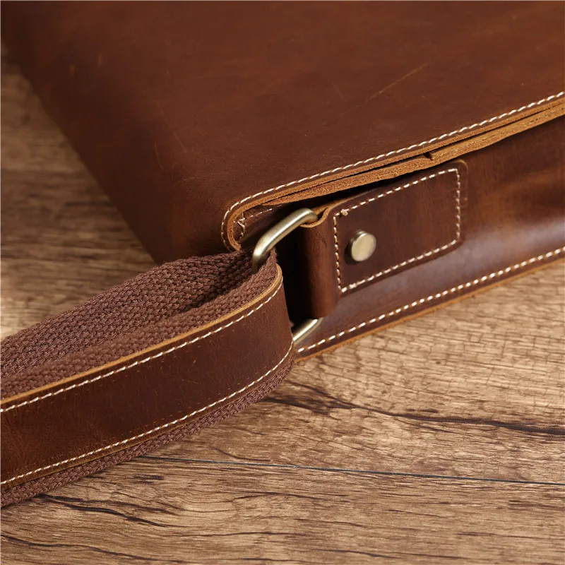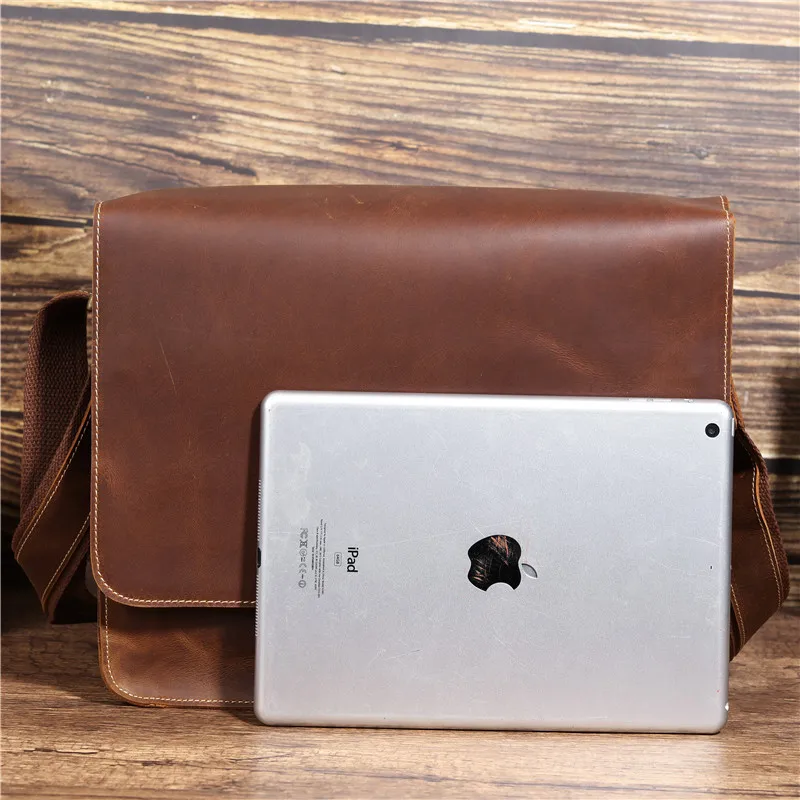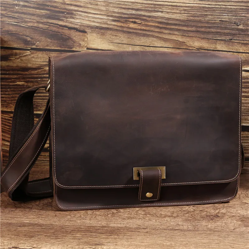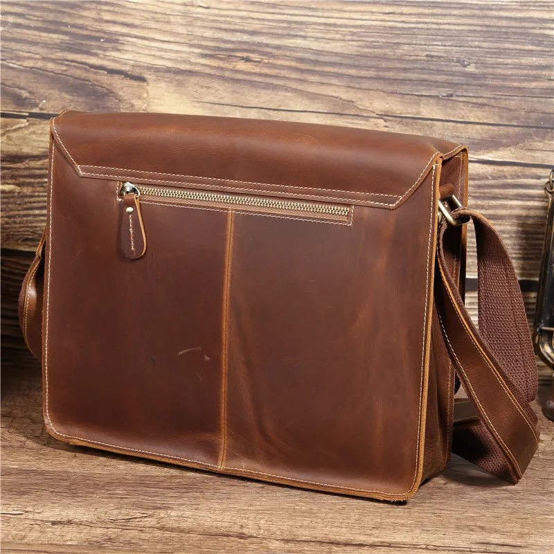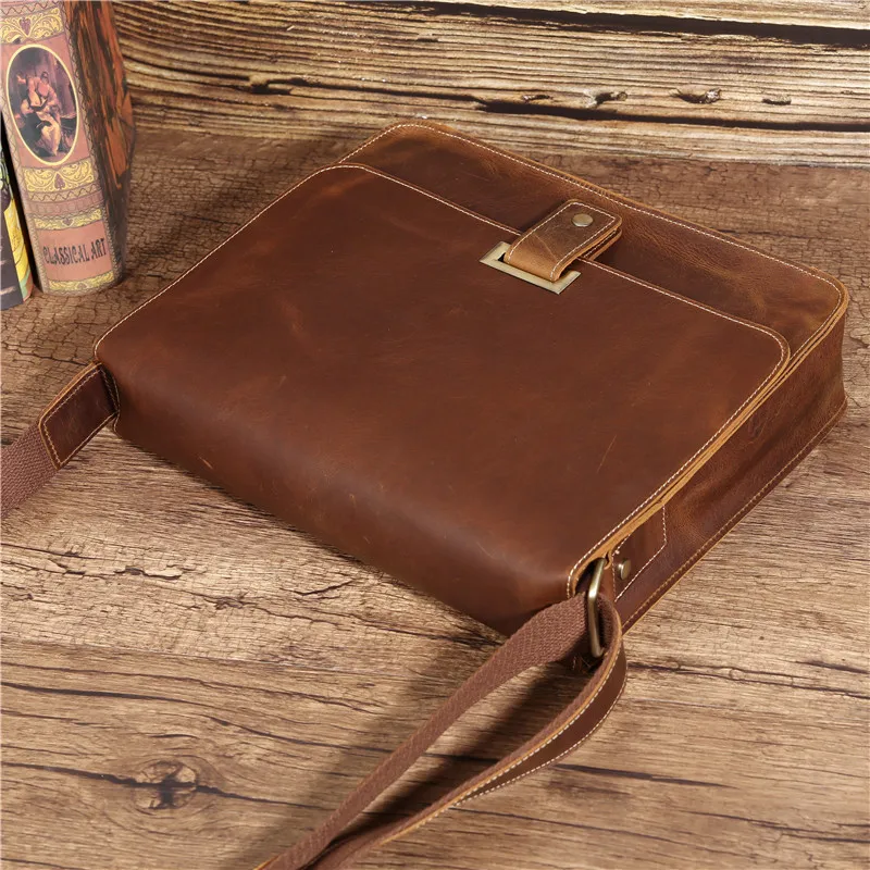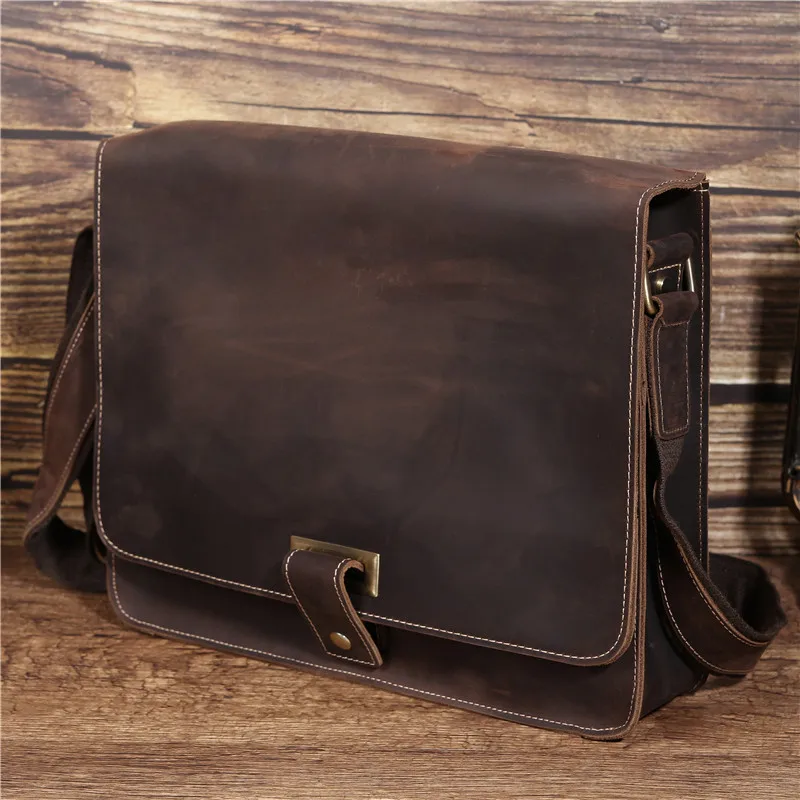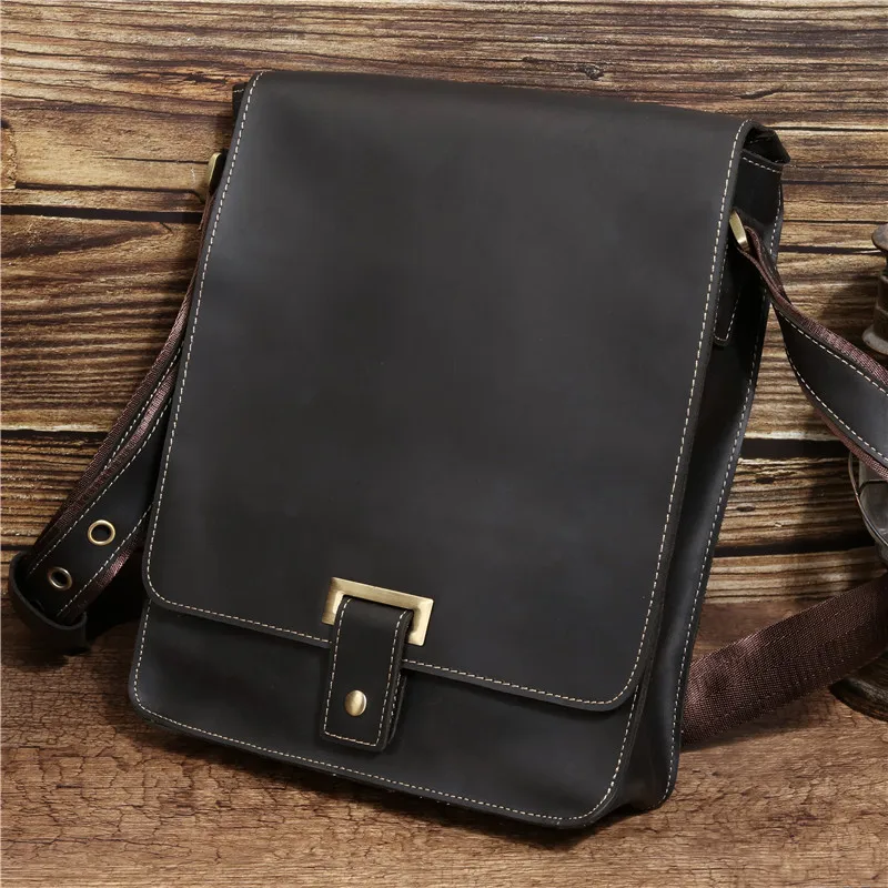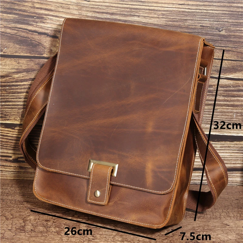Сумка-мессенджер мужская из натуральной коровьей кожи, с клапаном