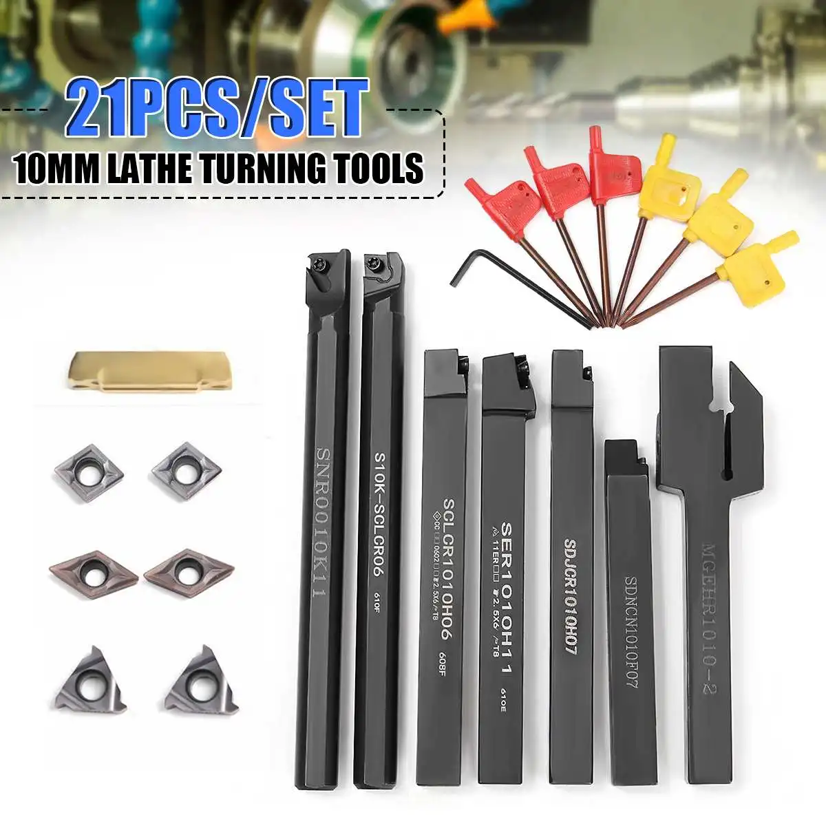 21 шт.компл., 10 мм держатель сверлильного инструмента + DCMT CCMT, карбидная вставка с 7 гаечными ключами для токарного станка