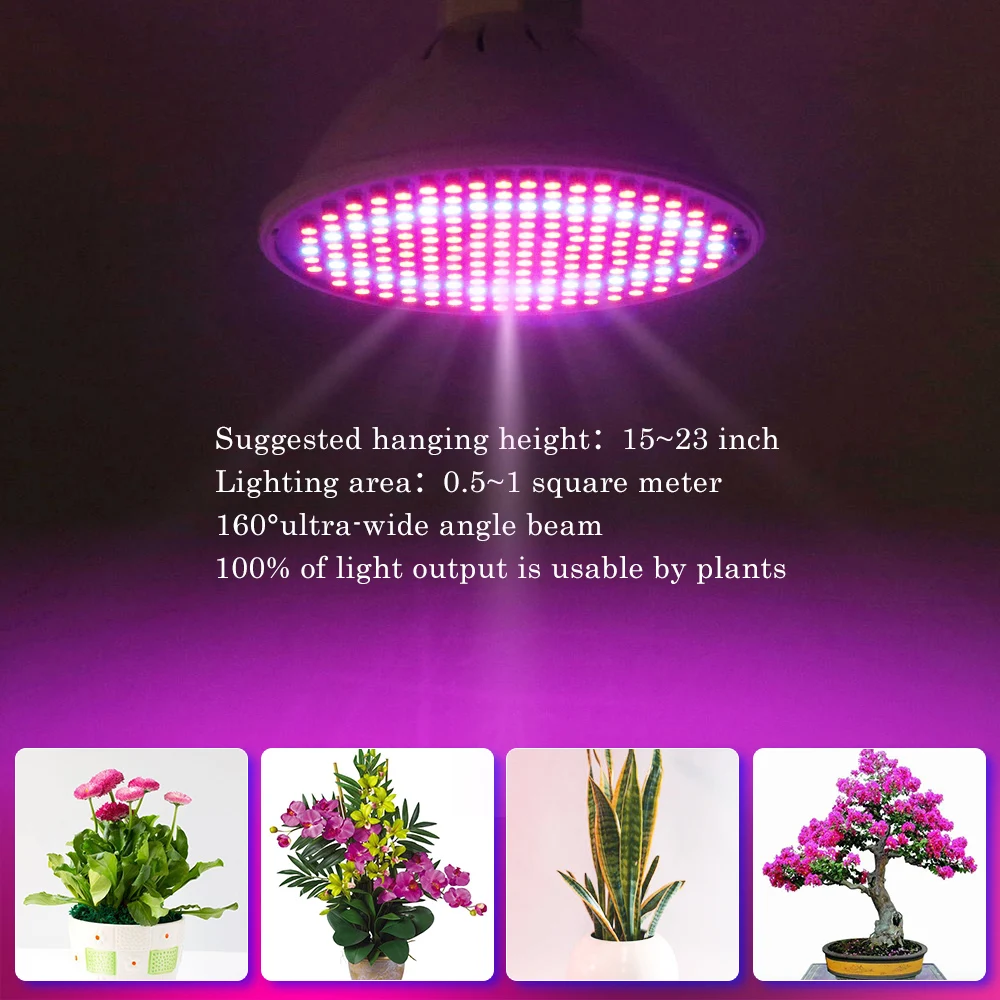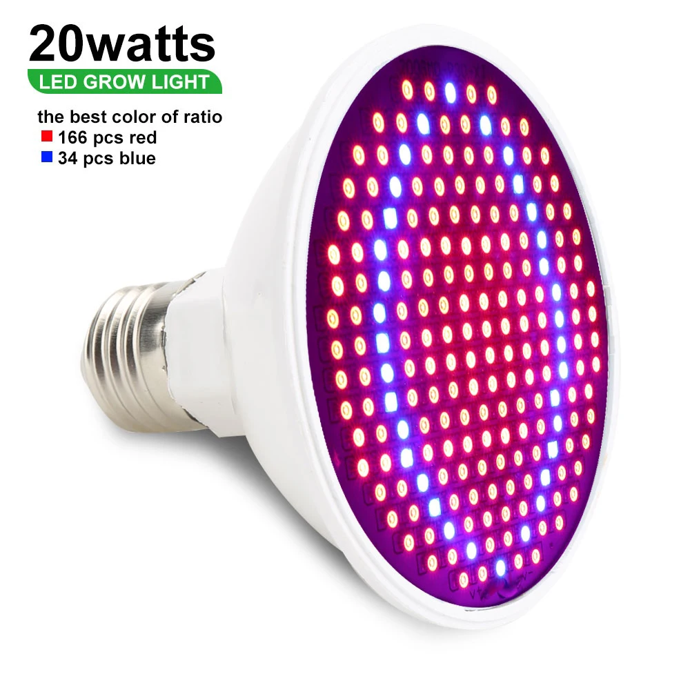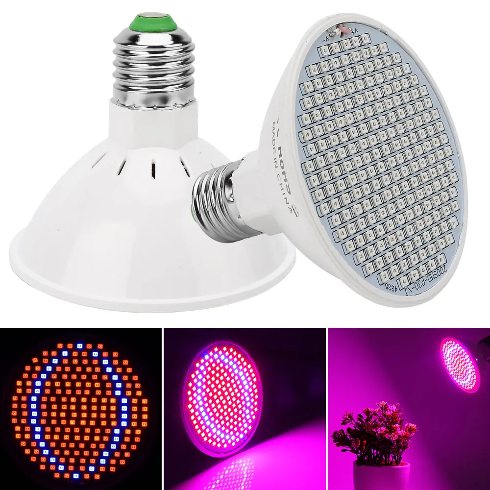 Светодиодная фитолампа полного спектра с креплением, E27, 200 светодиодов