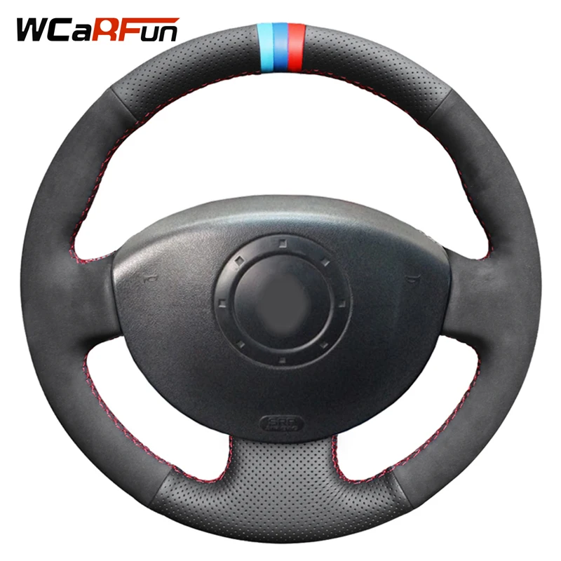 WCaRFun черный замшевый чехол рулевого колеса автомобиля из натуральной кожи для Renault Megane 2 2003-2008 Kangoo 2008 Scenic 2 2003-2009