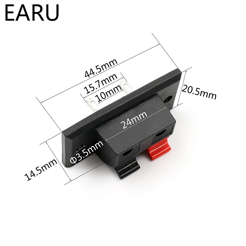 2 контактных разъема, 1 красный, 1 черный, 2 положения, конструкция пружинной нагрузки, тип нажима, клемма динамика.