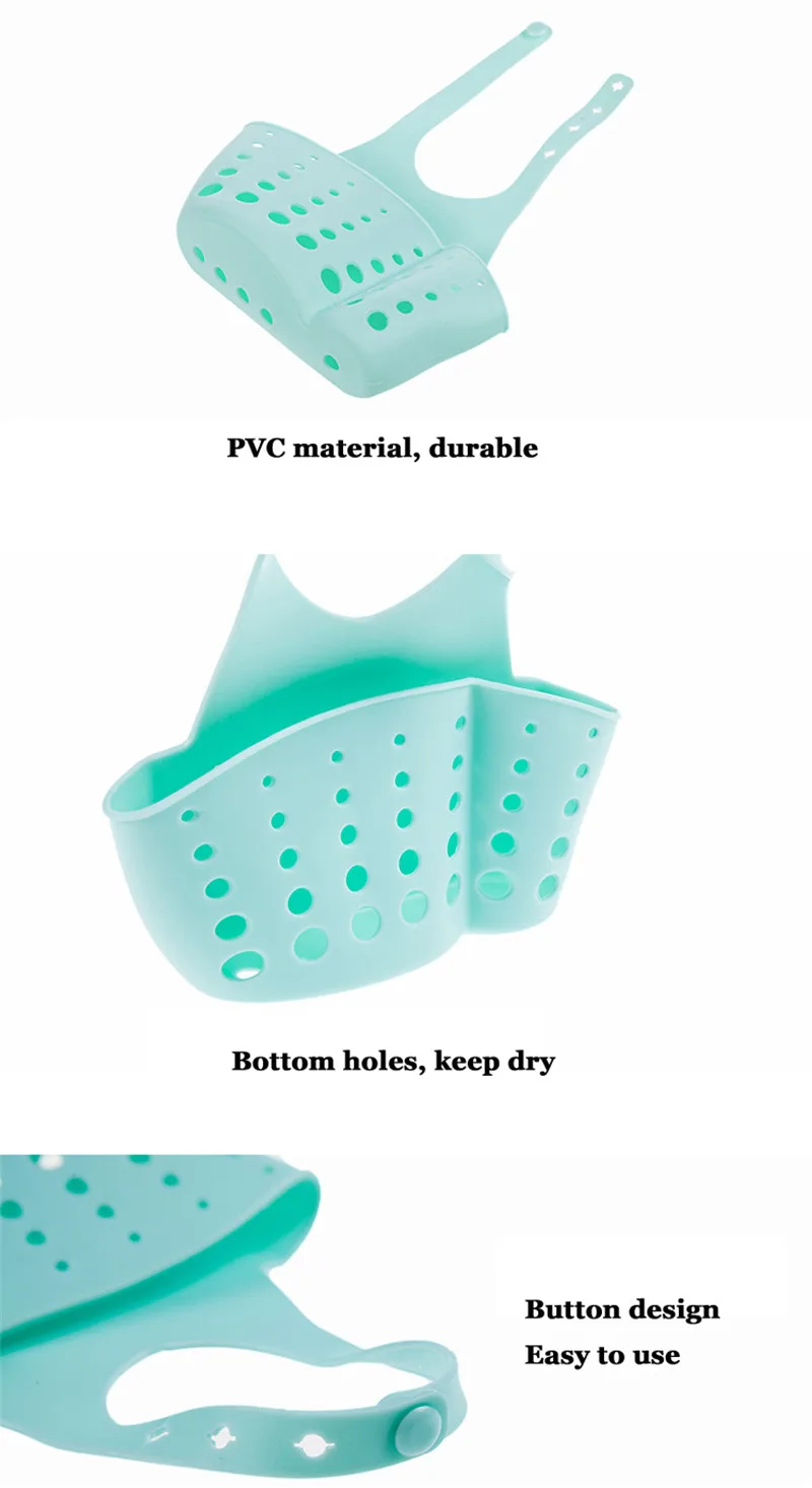 Описание:Кухонный портативный подвесной сливной мешок корзина для ванной гаджет для хранения Инструменты держатель для раковиныМатериал ПВХ, хорошая гибкость и легко моется.Регулируемая защелкивающаяся конструкция, легко повесить на раковину.Полый дизайн на дне, можно сливать, держать в сухости.Подходит для кухни и ванной комнаты.Висит на раковине, поможет вам хранить очиститель spong.Можно разместить чистящие шарики, мыло и другие мелкие предметы. Особенности и детали:Материал: ПВХЦвет: синий, зеленый, розовый, кофейныйРазмеры: 20x8,3x12 смВес: 60 г Посылка включает в себя:1 х сумка для хранения