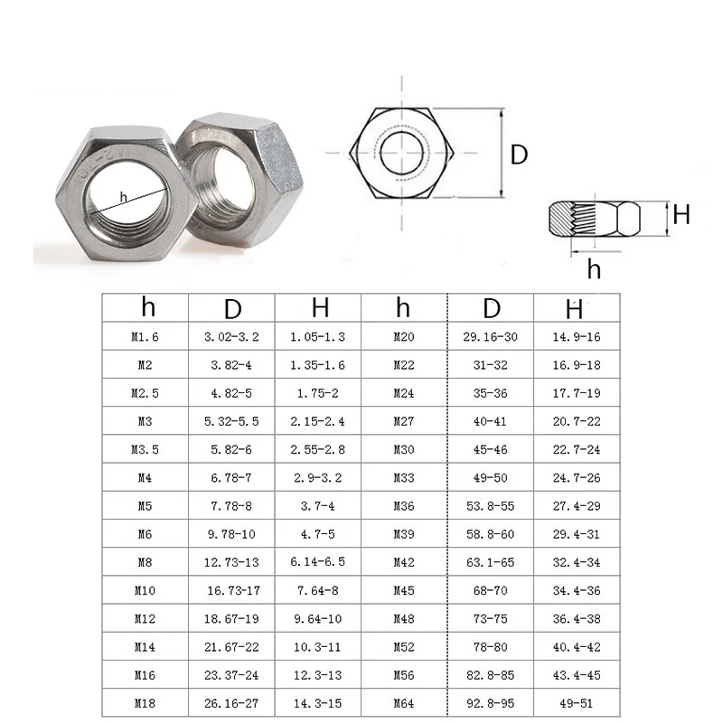 100 шт.лот Метрическая резьба DIN934 M2, 6 M2 M2, 5 M3 M3.5 M4 M5 304 шестигранные гайки из нержавеющей стали