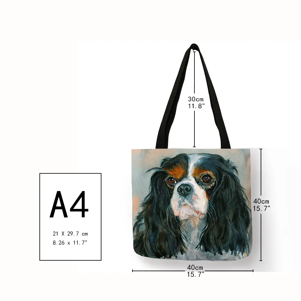 Уникальная модная сумка-тоут с принтом собаки Чарльза спаниеля, сумки для женщин, женские прочные сумки через плечо, большая ВМЕСТИТЕЛЬНОСТЬ Наименование товара: Сумка-тоутМатериал: льняной полиэстерРазмер: 40 × 40 см/15,7 × 15,7 дюймаДизайн: как на картинкеУпаковочный лист: 1 * сумка-тоут Особенности:* Экологически чистый высококачественный Льняной материал.* Новинка и красивый дизайн. Экологически чистые импортные чернила для печати и окрашивания. Никакого вреда для здоровья.* Складной, практичный и многоразовый. Очень полезно, когда выходите и экологически чистые* Используется как 1)Сумка-тоут (Индивидуальная Повседневная Сумка-тоут для ежедневного использования. Как для модных женщин, так и для мужчин.)2) хозяйственная сумка (Складная и многоразовая и экологически чистая)3)Сумка для хранения (домашнее хранение одежды, игрушек, книг, постельных принадлежностей, мелочей и т. Д.) * Мы поддерживаем прямые поставки, оптовые и индивидуальные, добро пожаловать к нам.