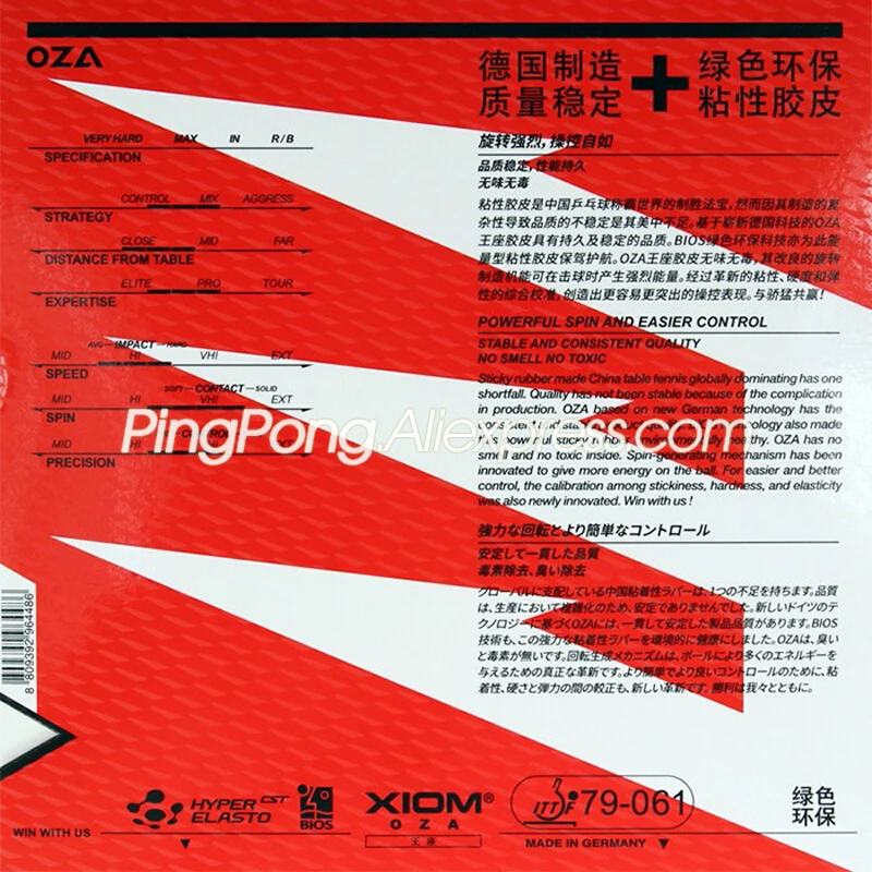 XIOM OZA (липкая Резина + губка BIOS, вращение и контроль), резина для настольного тенниса, оригинальная губка XIOM для пинг-понга