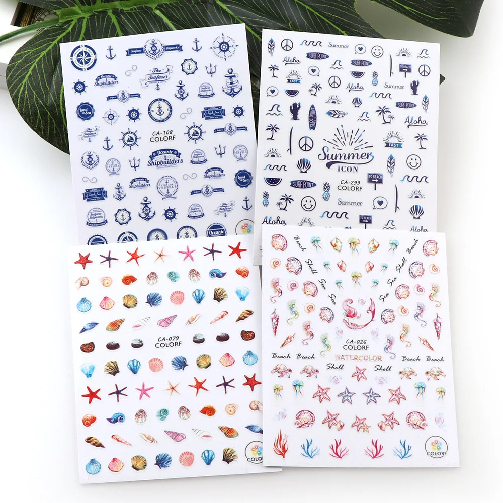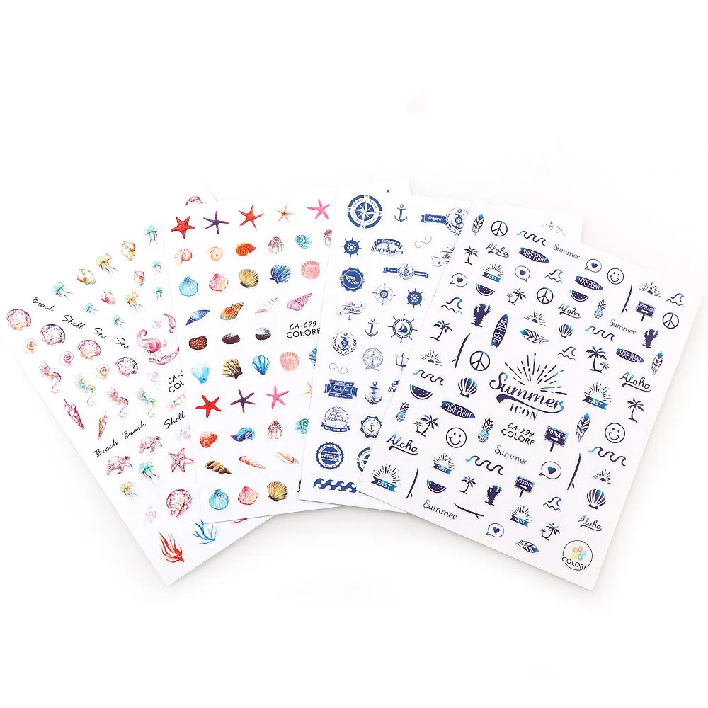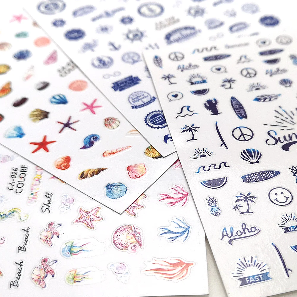 Наклейки для дизайна ногтей, летние наклейки с морскими животными, ...