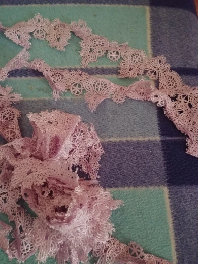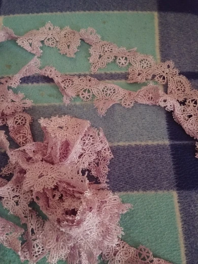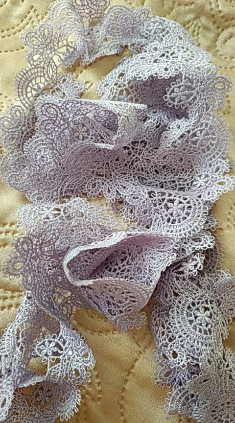 Очень мятое кружево. Буду гладить. На фото кружево яркое, а прислали очень бедное. В этом разочарована.