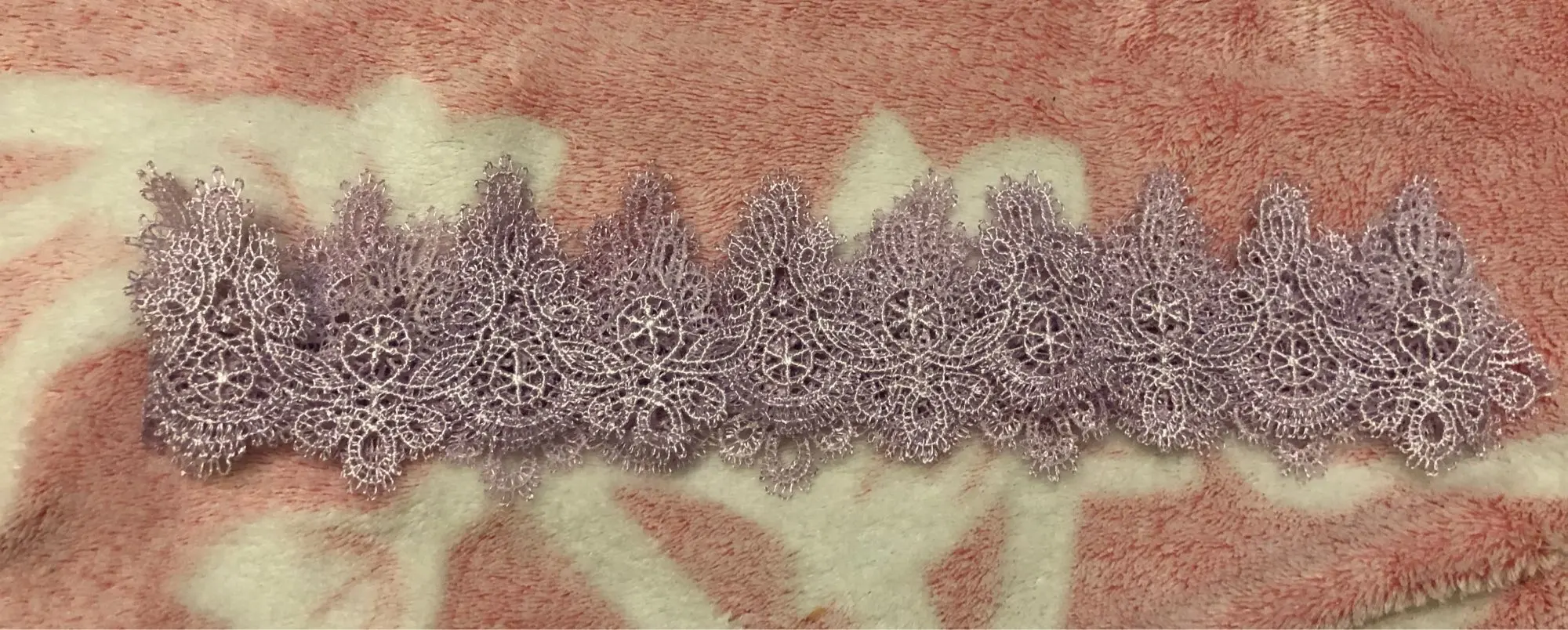 Кружево очень плохого качества, просто тряпочка тоненькая.Всего 90 см.Абсолютно не пригодное для шитья.Доставка очень долгая.Никогда больше не закажу у этого продавца.