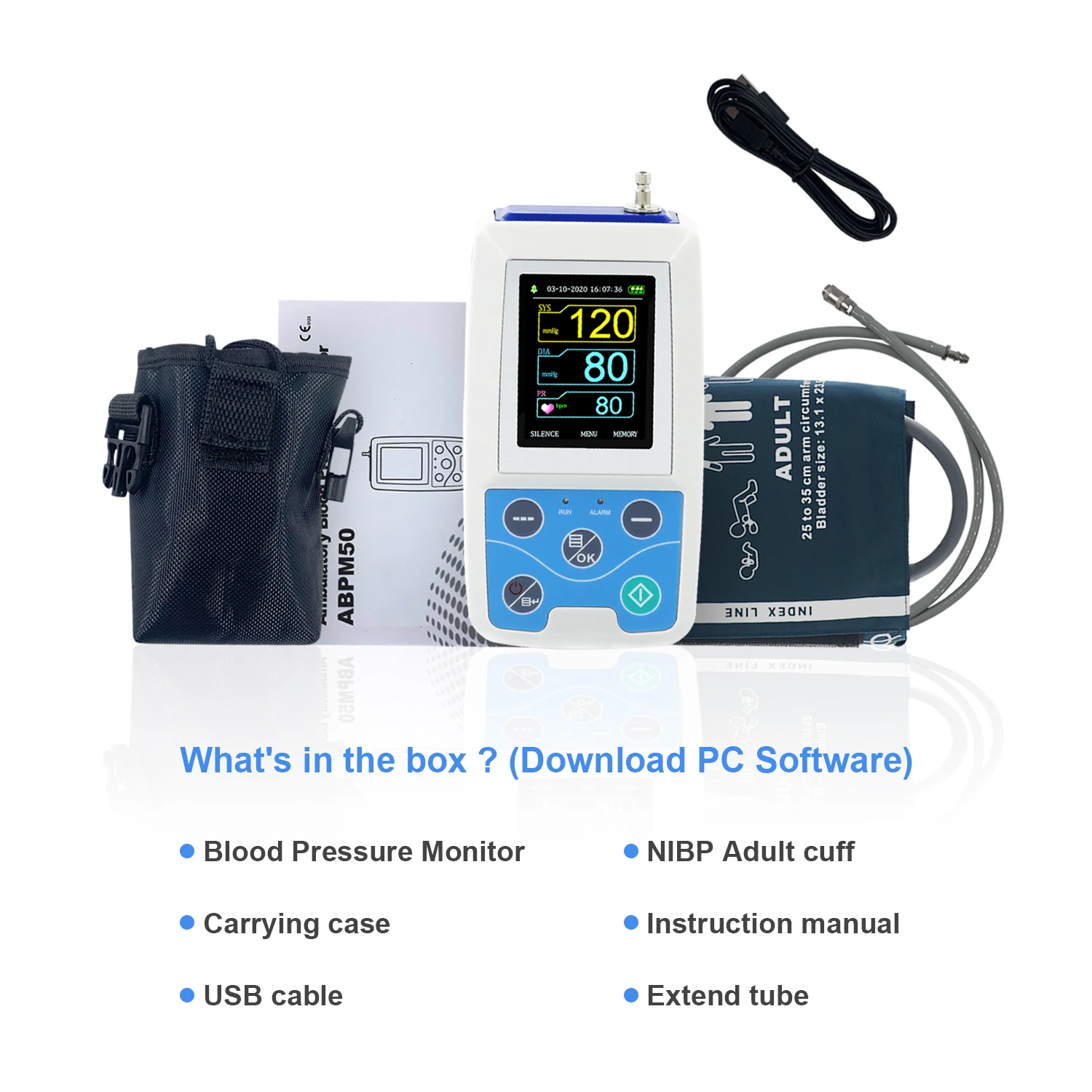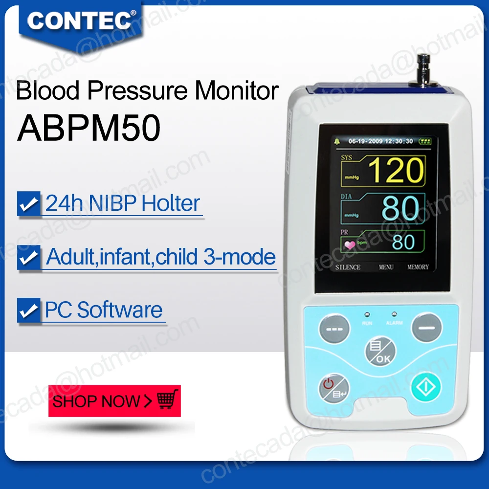 Arm Амбулаторный монитор кровяного давления 24 часа NIBP Holter CONTEC ABPM50 + взрослый, ребенок, большой, 3 манжеты, бесплатное программное обеспечение для ПК