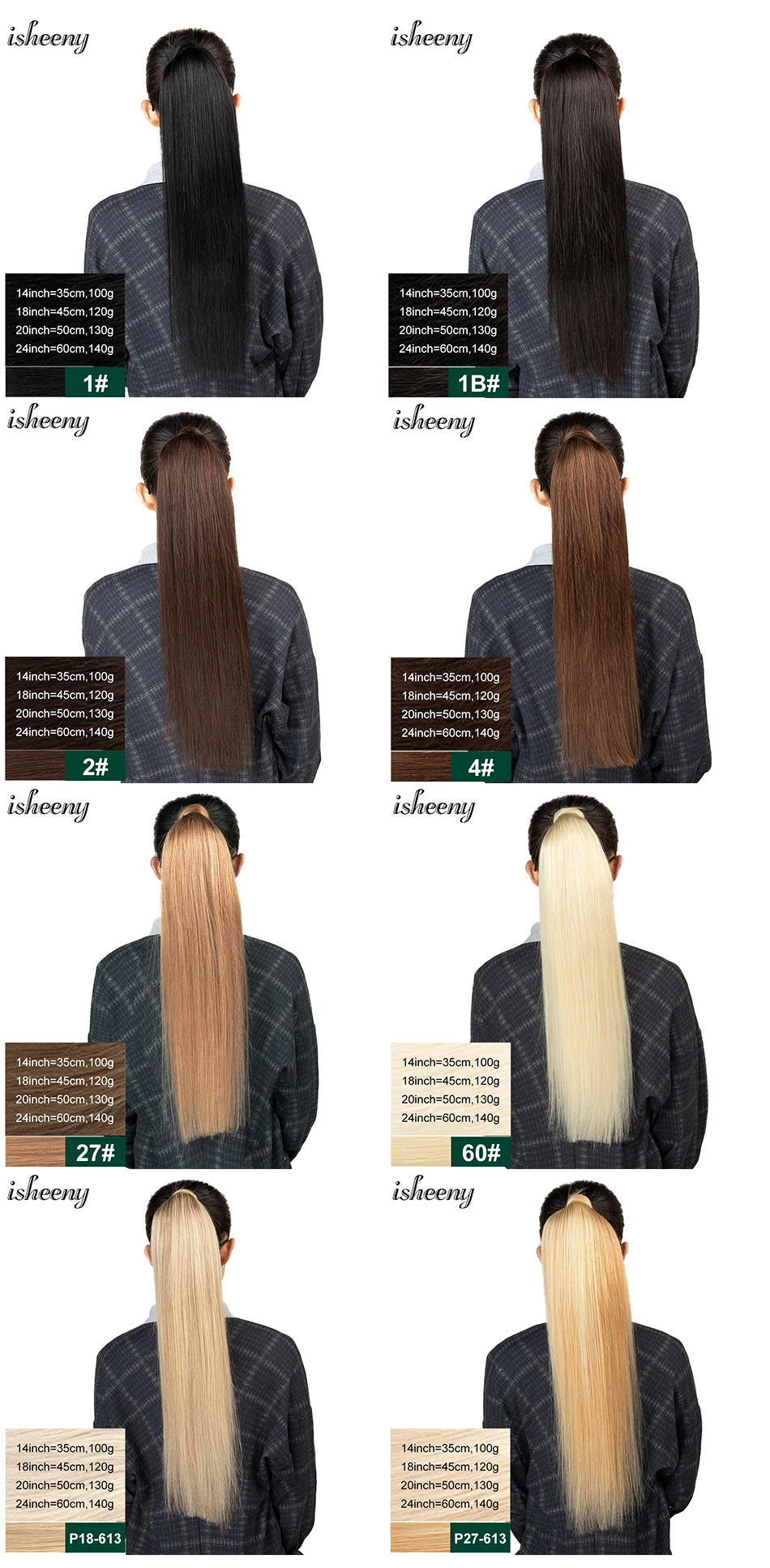 Isheeny бразильские человеческие волосы Remy для наращивания в виде хвоста прямые человеческие волосы для наращивания 14 "18" 22"