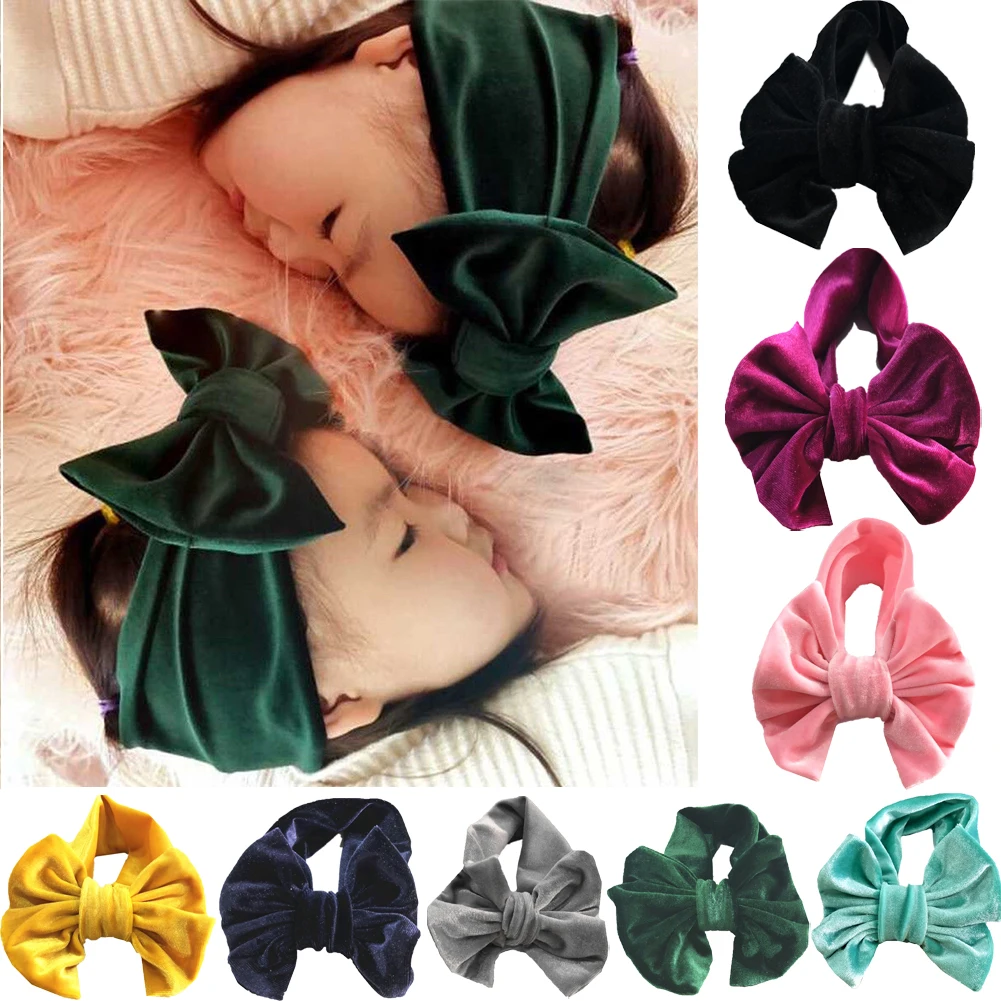 Новинка 2019, брендовая повязка для волос с бантом для маленьких девочек, бархатная повязка на голову с бантом, хлопковая однотонная яркая повязка на голову, подарок, женская