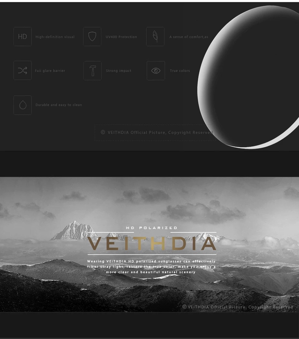 Солнцезащитные очки Мужские Veithdia, квадратные, с поляризационным покрытием, 2019, 2462