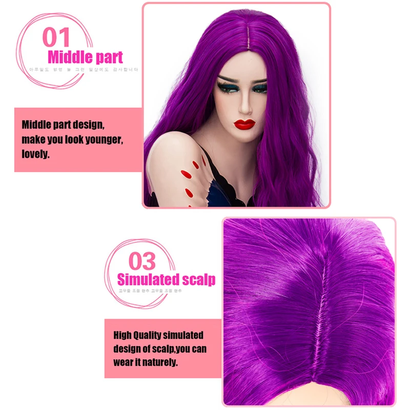 Парик Yiyaobess Женский, длинный волнистый, фиолетовый, из синтетического волокна, розовый, зеленый, 28 цветов, 70 см, для косплея