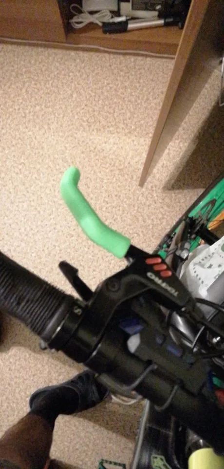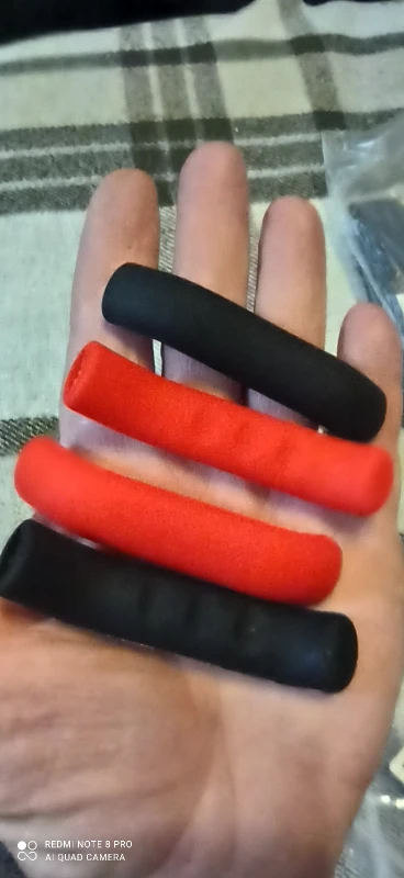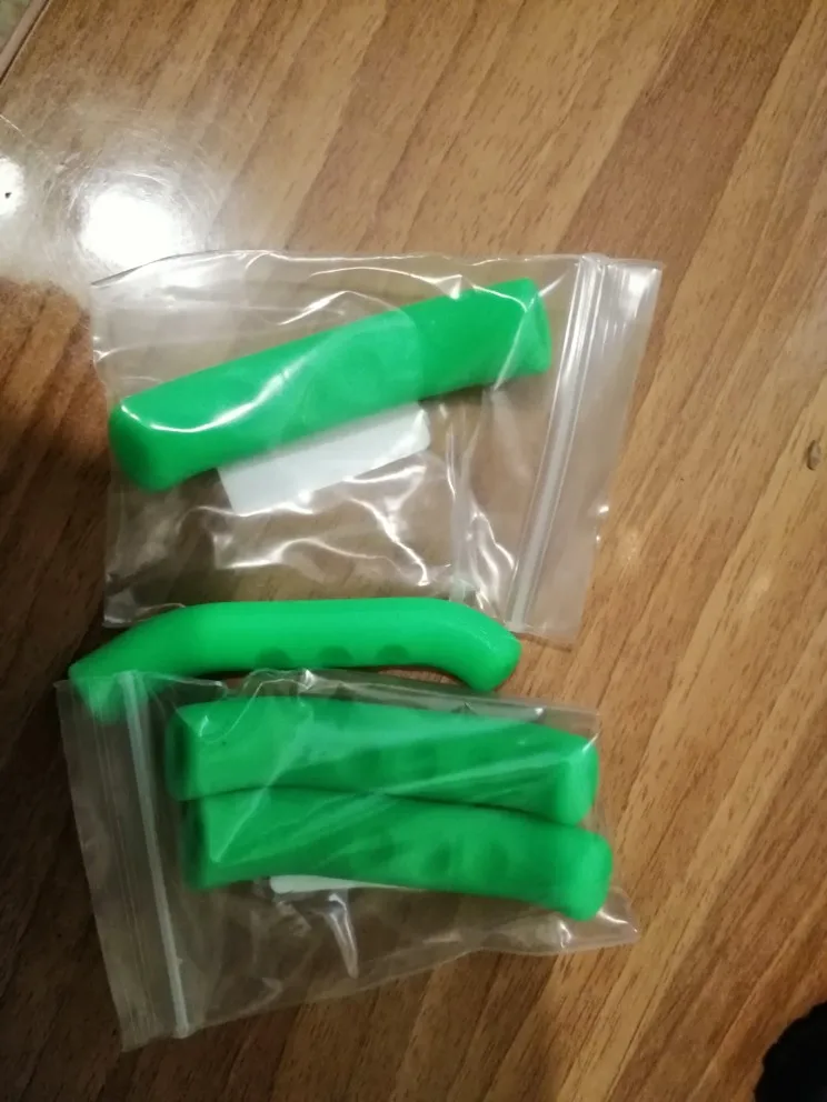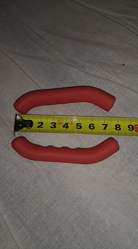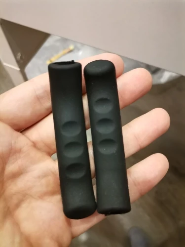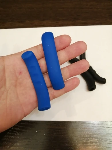 Отличные насадки для ручек тормозов.Извлёк из пакета насадки запах лёгкий приятный. Полежали без упаковки и он улетучился а жаль. На сухую одеть тяжело, спасает капля жидкого мыла внутрь и карандашом промазать внутри. Или смазать сам рычаг только не много иначе бедет соскальзывать (лишнее вытереть) лучше меньше. Короче отличные насадки и отличный продавец. Получил доставил за 23 дня Рекомендую этого продавца!!!