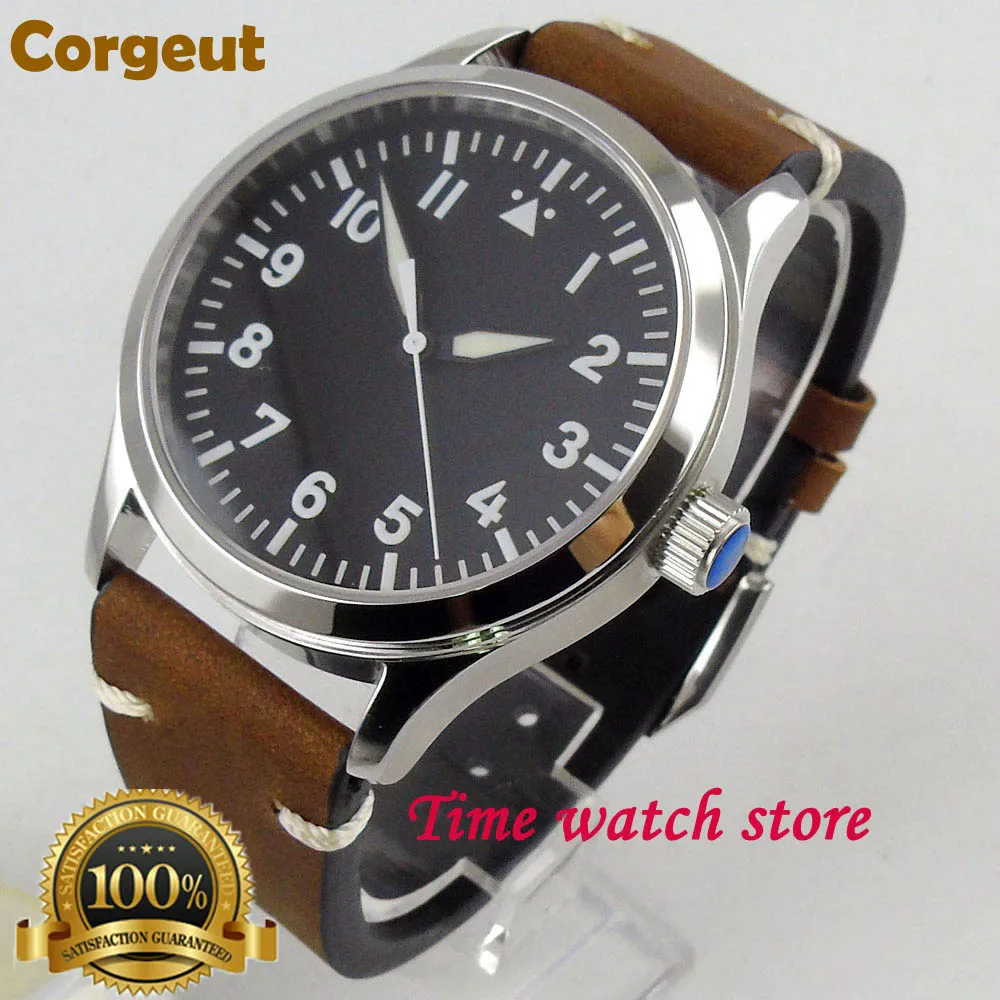 Циферблат: черный циферблат со светящимися стрелками и метками; Белые/зеленые метки
