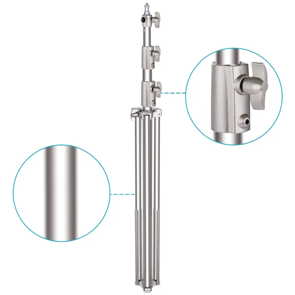 Регулируемая высота: регулируемая высота колеблется от 39 дюймов/99 см до 102 дюймов/260 см; Используя гибкий вращать переключатель, вы можете свободно регулировать высоту для удовлетворения различных требований к съемке