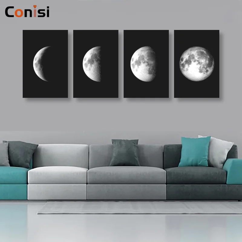 Абстрактный постер Conisi с изображением Луны, сменой фазы Луны на холсте, астрономический спутник, домашний декор, украшение для спальни
