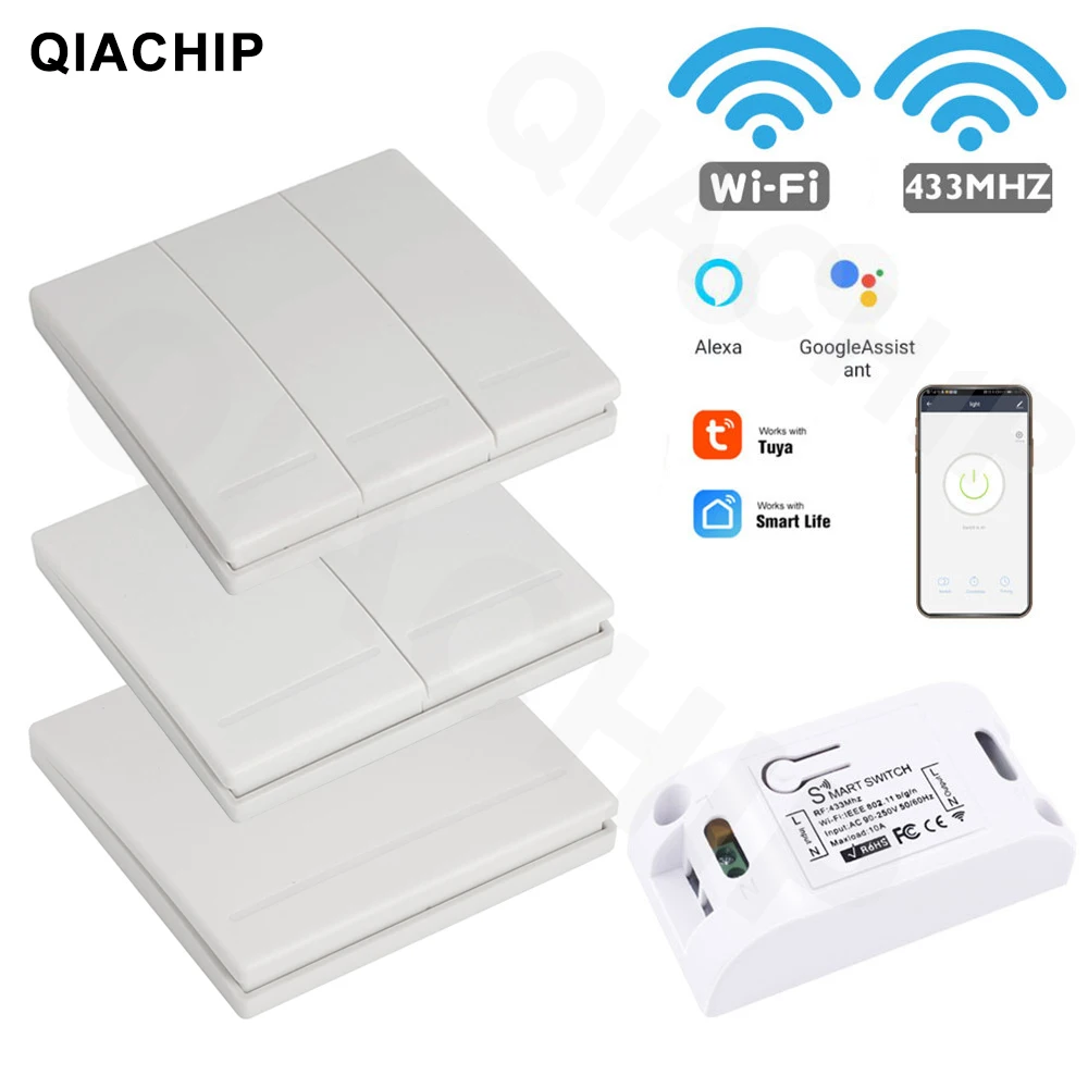 QIACHIP RF WI-FI Беспроводной 10A IOS Android 2200 W AC 90-250 V умный дом выключатель света модуль + 86 стены Панель Беспроводной передатчик