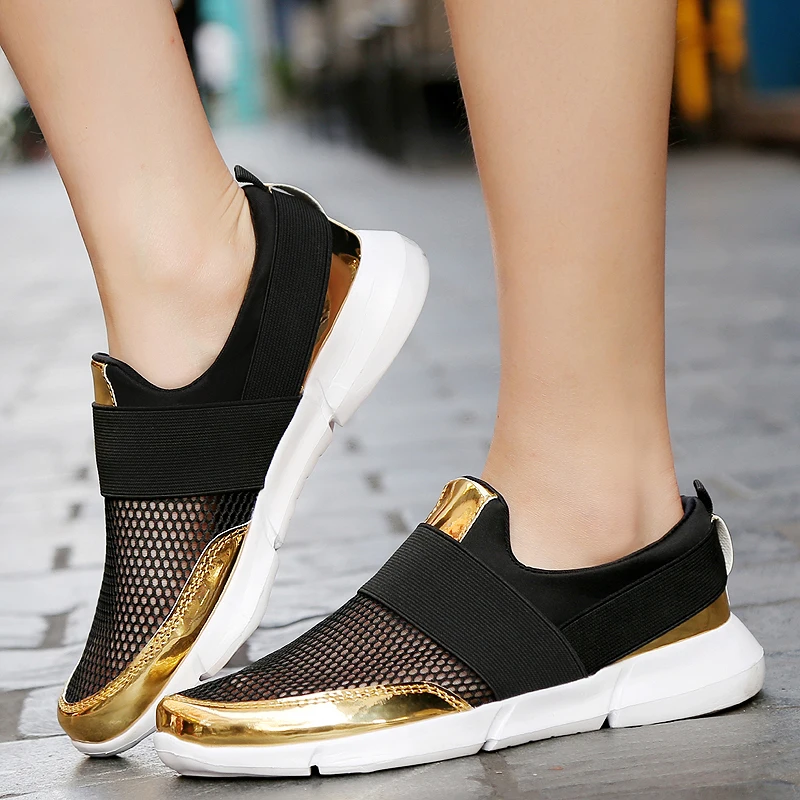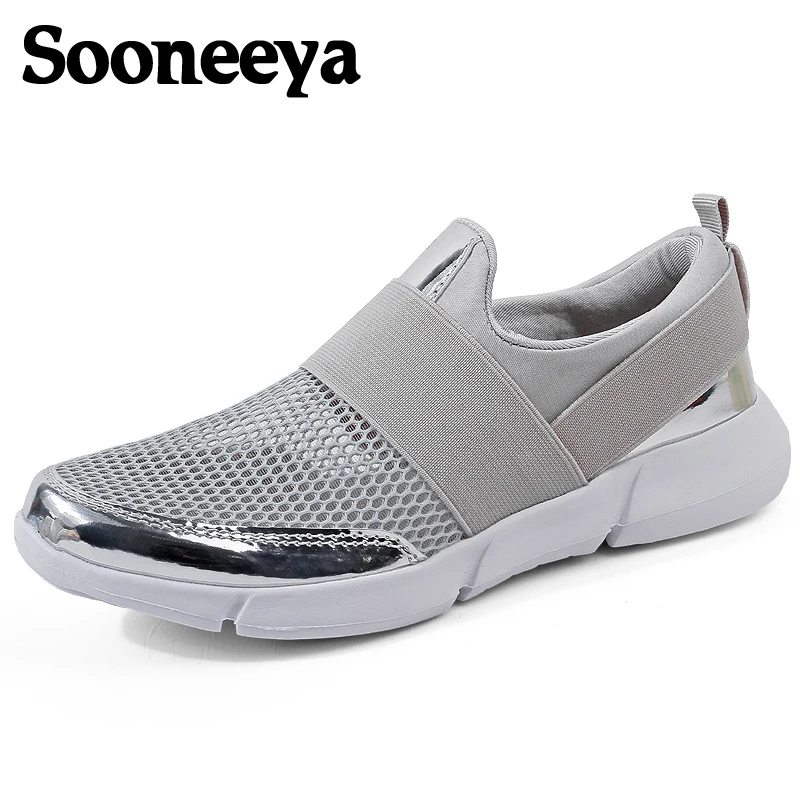Женские кроссовки с амортизирующим покрытием Sooneeya, золотистые сетчатые Повседневные слипоны, эластичные кроссовки, прогулочная обувь 42