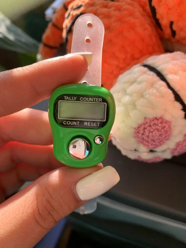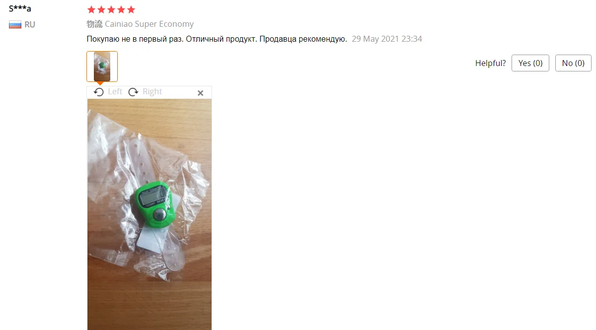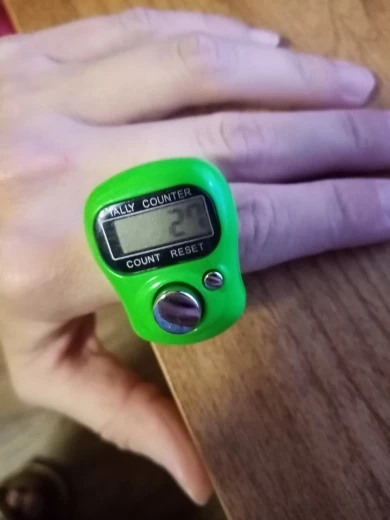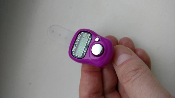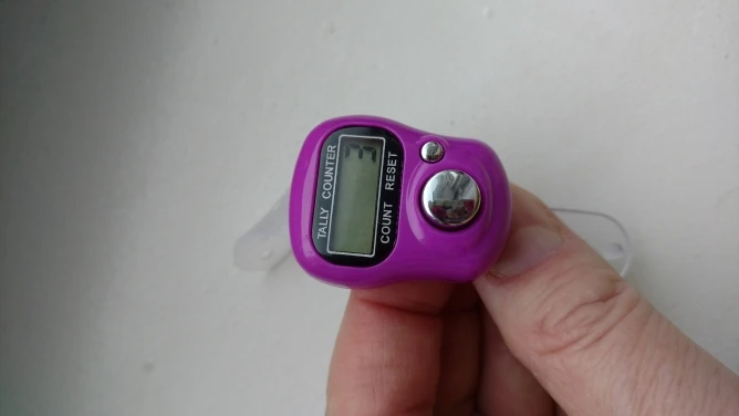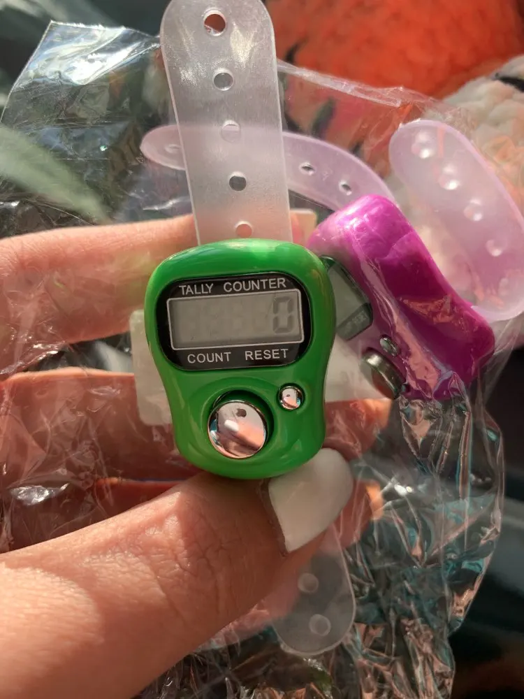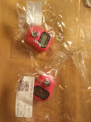 до Красноярска заказ шел примерно 1,5 месяца. просила продавца 2 разных цвета, положили 2 счётчика, но одного цвета, не критично конечно, но для разных проектов было бы удобнее. счётчик уже "пустила в дело", вещь оооочень удобная! на тонкий "большой" палец как у меня большеват, не спадает, но хотелось бы поплотнее. оба счётчика работают, отключаются сами через некоторое время. смело заказывайте