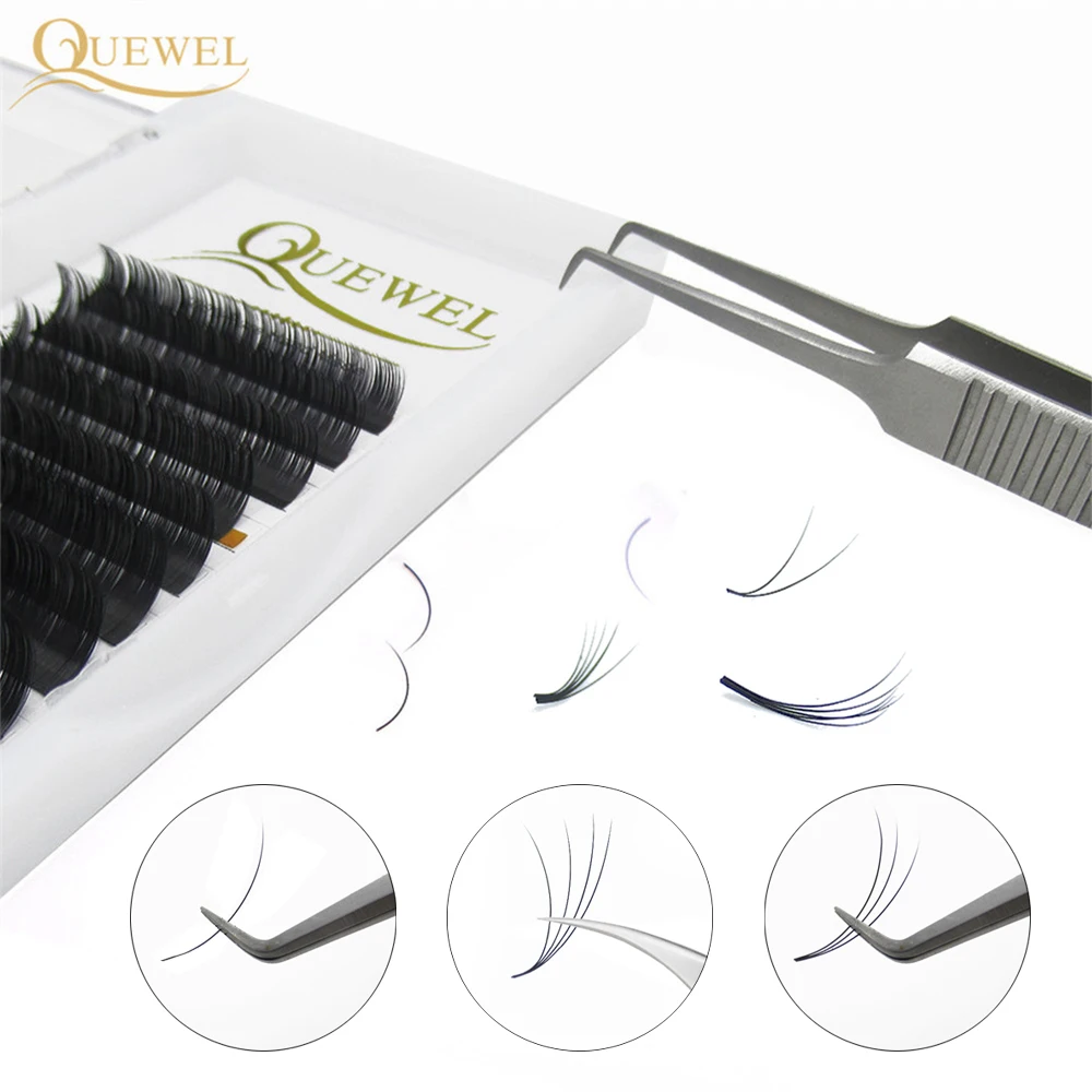 Объемные ресницы для наращивания Cilia автоматическое цветение смешанный размер 8-15 мм CD завитые ресницы для наращивания натуральные накладные ресницы Quewel