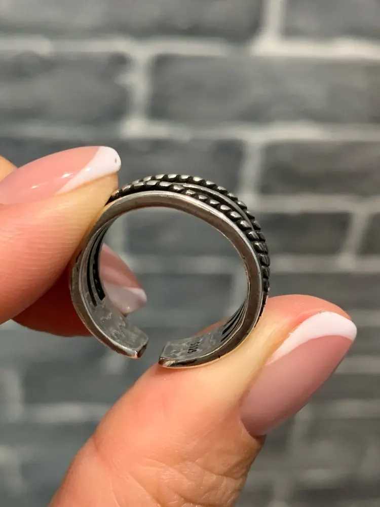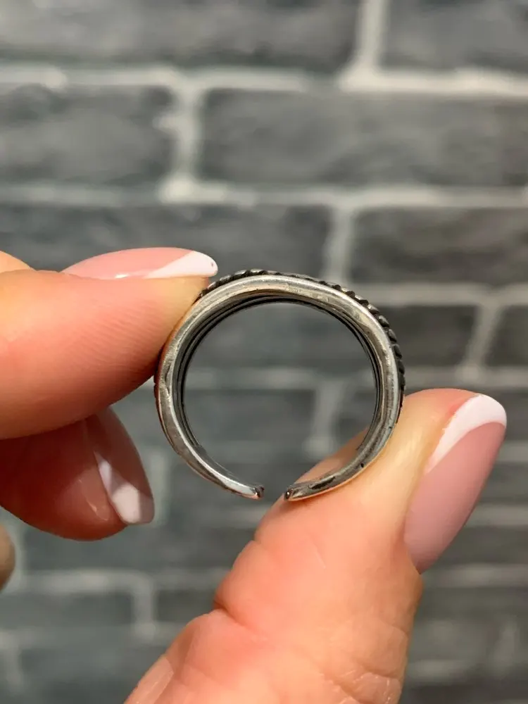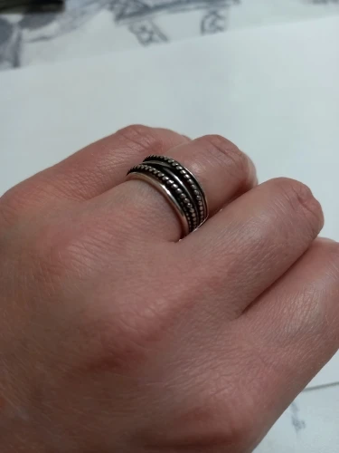 Красивое кольцо!!!! Буду носить его на безымянном пальце в тандеме с более массивным кольцом в той же стилистике. Продавцу огромная благодарность за качественный товар, быструю и аккуратную доставку!