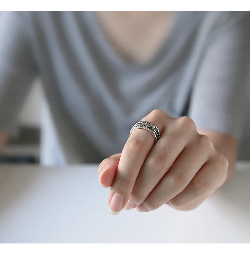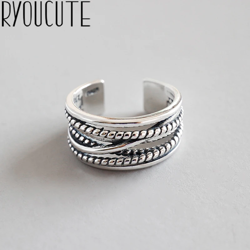 RYOUCUTE ювелирные изделия из настоящего чистого серебра винтажные Многослойные большие кольца для женщин на свадьбу кольцо с открытым пальцем Anillos Anelli