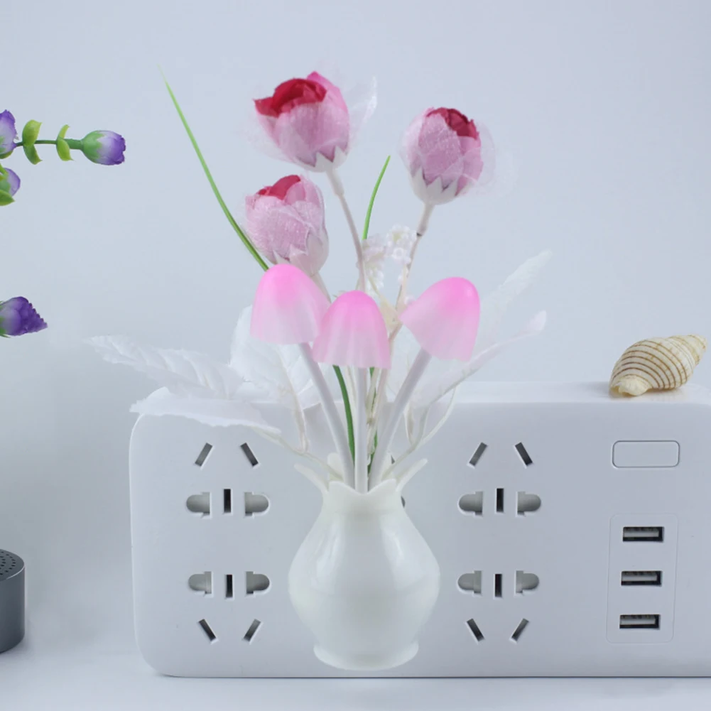 Симпатичный цветной светодиодный ночсветильник в виде гриба, романтический сиреневый ночсветильник для домашнего искусства, декоративное освещение, вилка стандарта СШАЕС