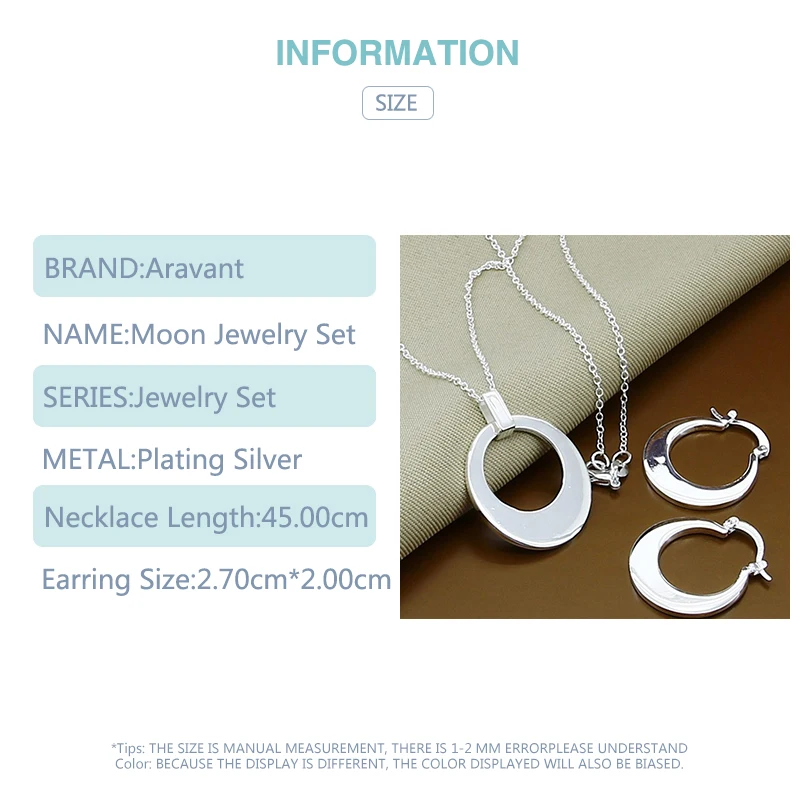 Модный свадебный ювелирный набор, 925 серебряные серьги-кольца с Луной, подвески цепи колье, набор для женщин, модные ювелирные аксессуары