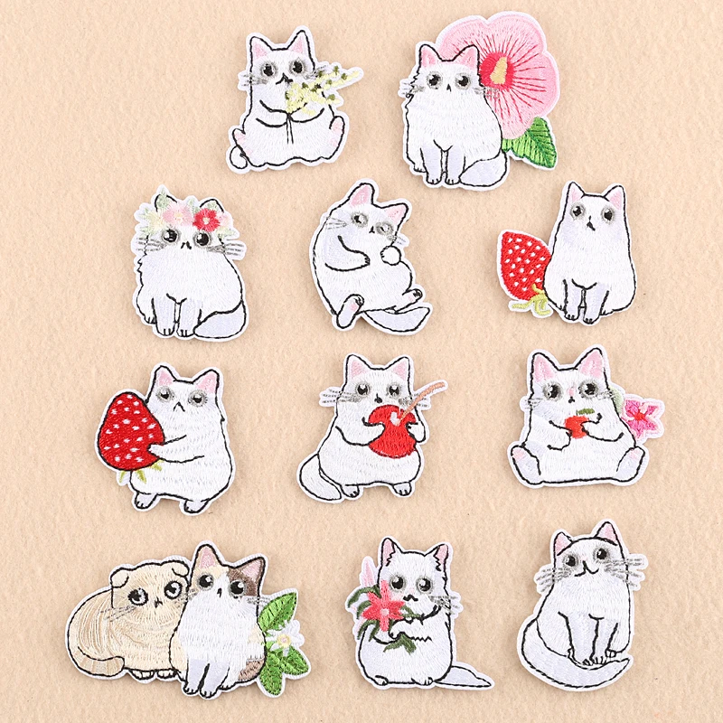 1 шт. Мультяшные нашивки с фруктами и кошками для детской одежды, аппликации сделай сам, нашивка в полоску, вышитые наклейки, милые цветы, значок @ B