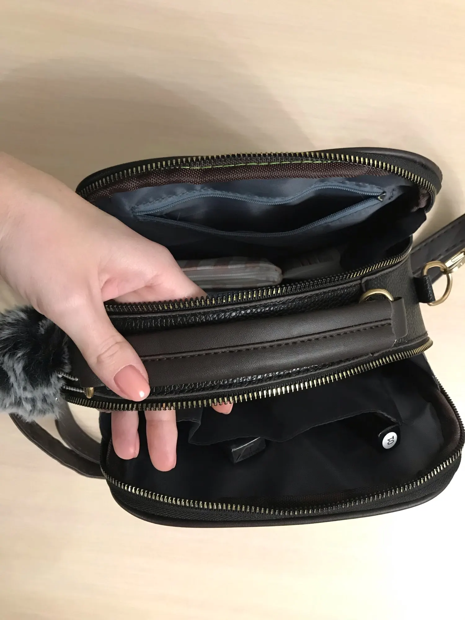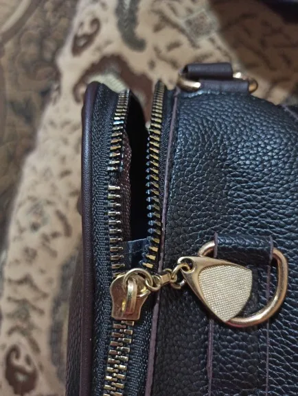 Очень крутая сумочка для своей цены. Я влюбилась в неё. Маленькая и вместительная. Три кармана снаружи на молнии. Внутри - два на молнии, один из них служит ещё и перегородкой между двумя отделами сумки, и два карманчика открытые. Сумка прошита хорошо, змейки целые и работают. Само качество отличное. Рекомендую)