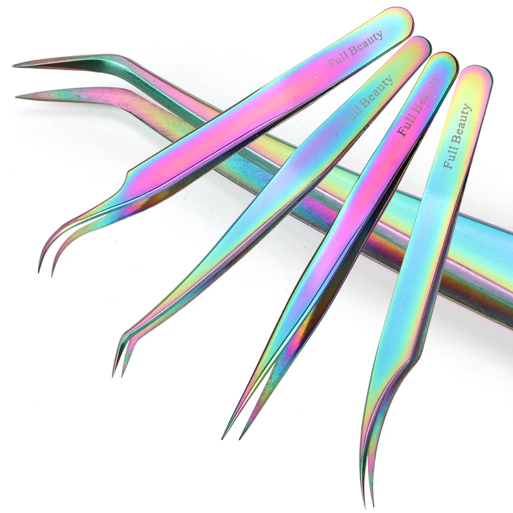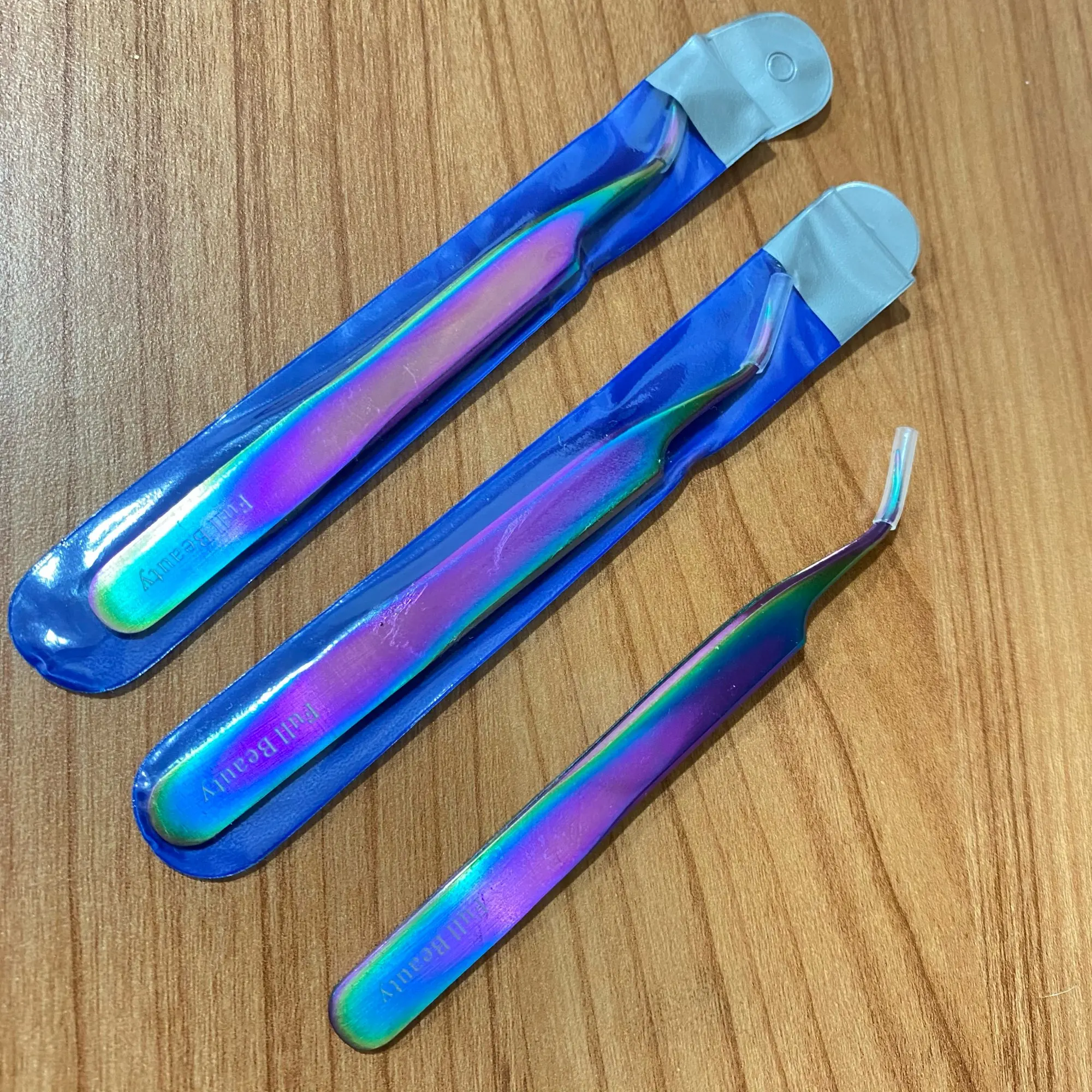 1 шт. Изогнутый прямой пинцет цветРадуга для наращивания ресниц средство для декора ногтей средство для удаления мертвой кожи маникюрный макияж инструменты для ногтей JIFBT1-4