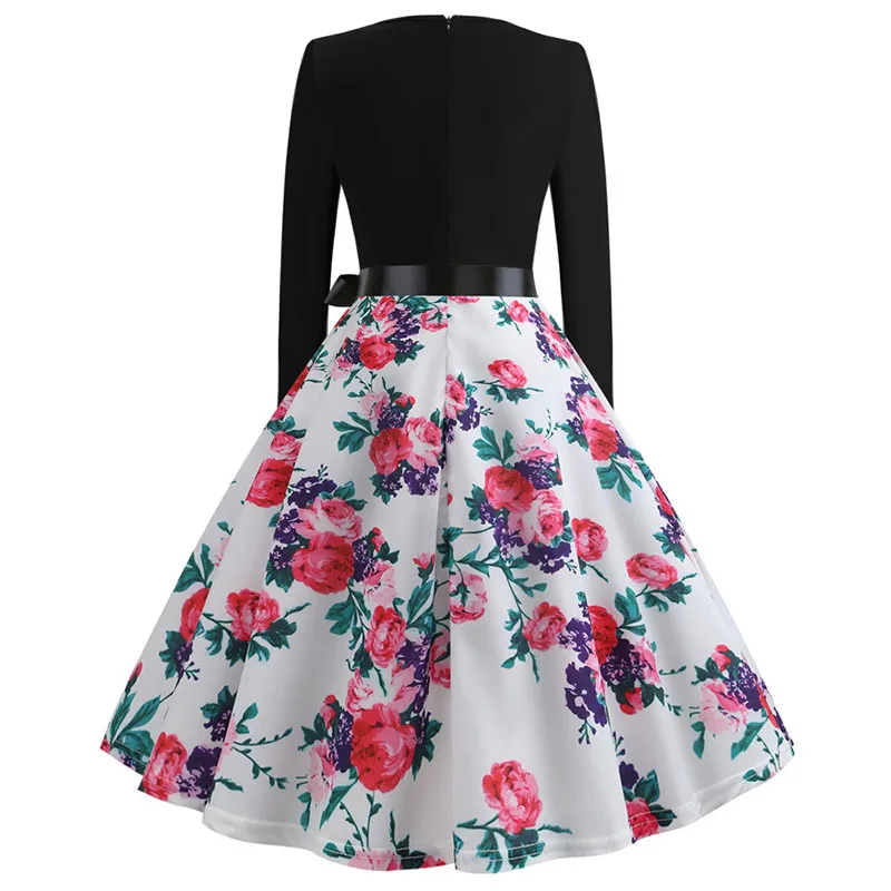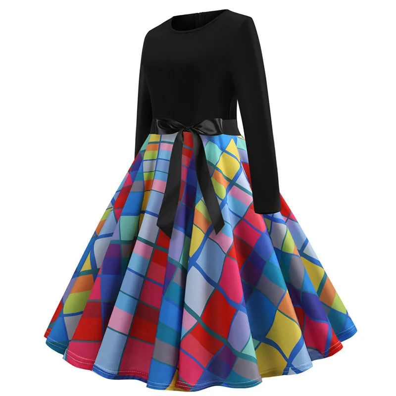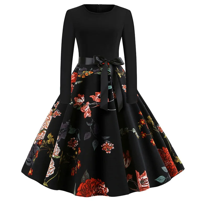 Женское платье с круглым вырезом junxi WAN, черное Повседневное платье с круглым вырезом, приталенное, с бантом на поясе, средней длины, с бантом на поясе, зима 2019