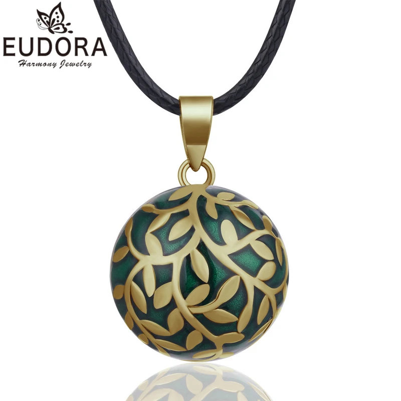 Ожерелье EUDORA с подвеской в виде зеленых листьев, бронзовый колокольчик, для женщин, модные украшения, подарок, винтажная гармония, Мексиканский шар для беременных