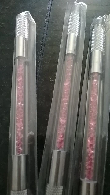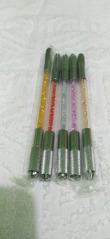 Ручная акриловая ручка для татуажа с двойным кристаллом, инструменты для перманентного макияжа и микроблейдинга бровей, 2 использования для плоских или круглых игл