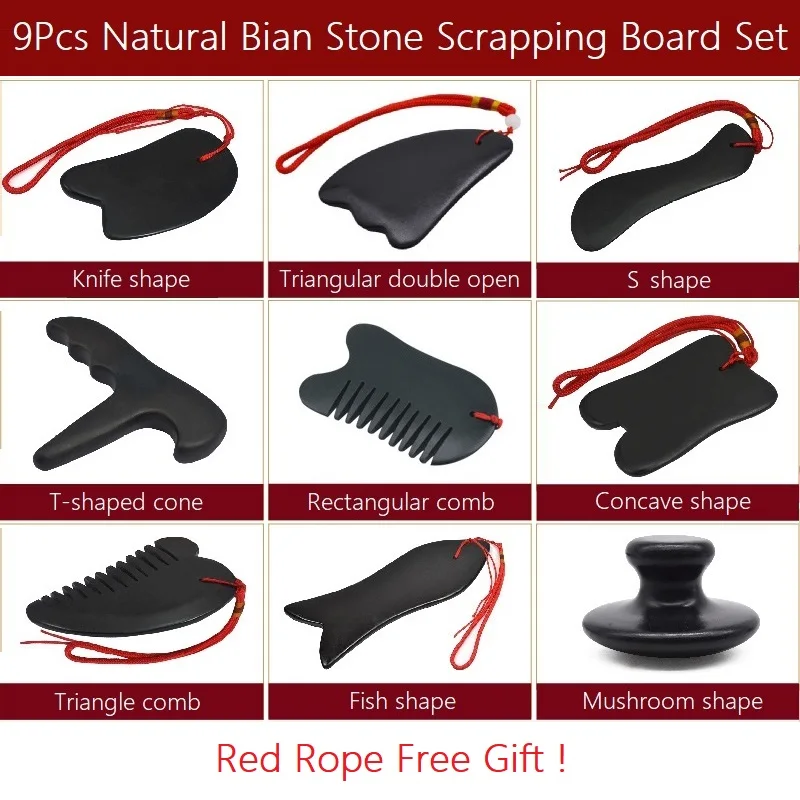 9 шт. натуральный Бянь камень скраппинг пластина массажер Скрап доска набор традиционные каменные иглы физиотерапия массажный инструмент