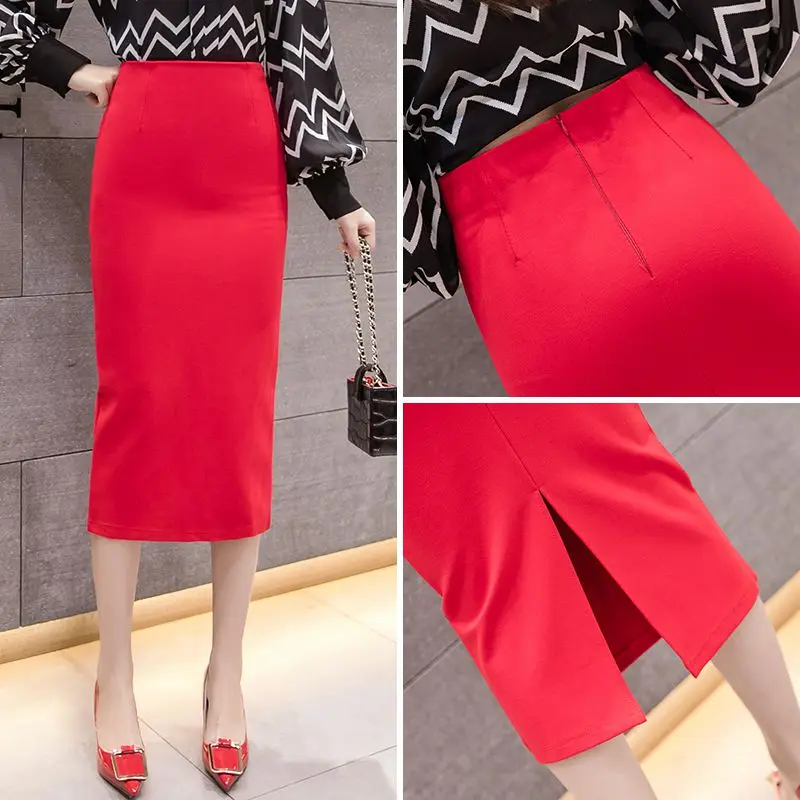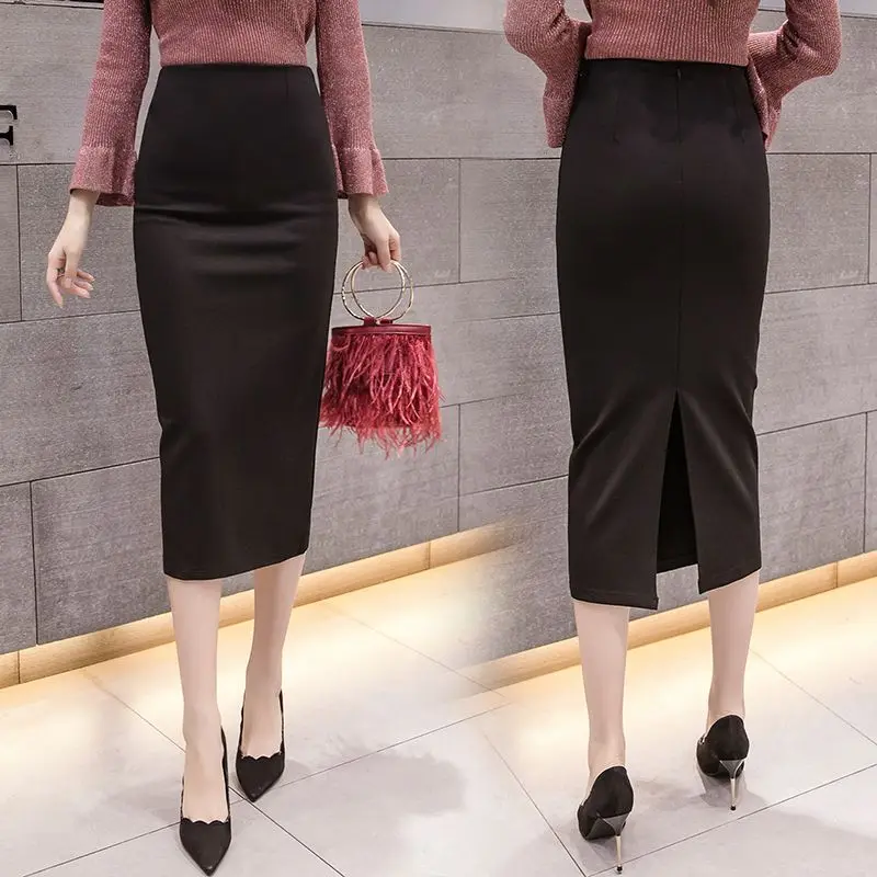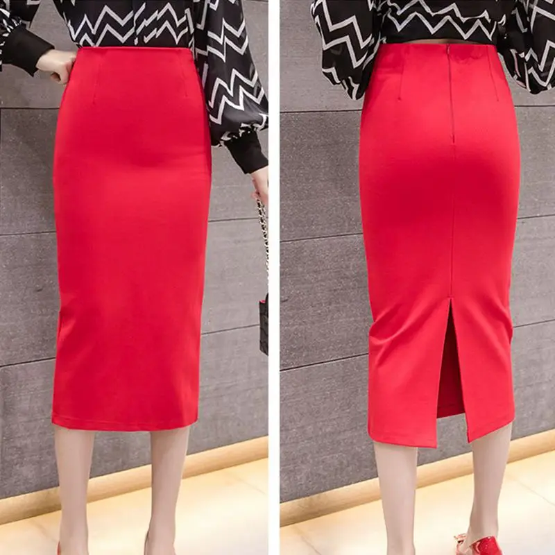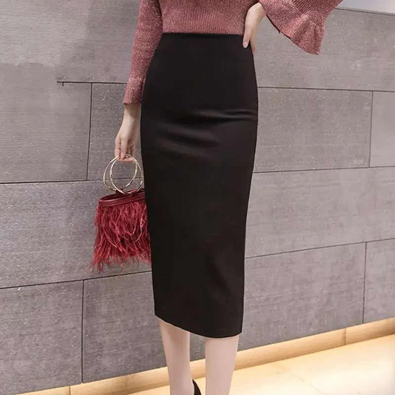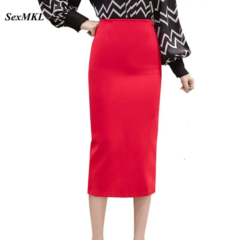 Женская юбка-карандаш с завышенной талией, до середины икры