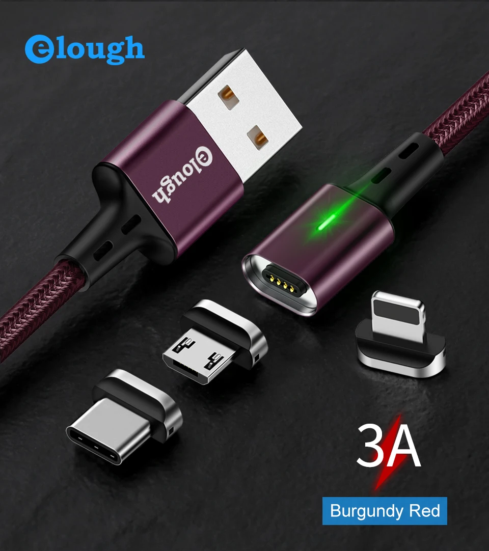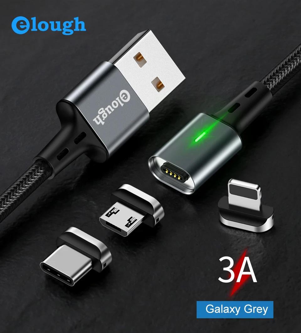Светодиодный кабель micro usb Elough для xiaomi redmi note 5 pro, зарядное устройство для телефона, магнитный кабель для iphone, usb type c, Магнитный зарядный кабель