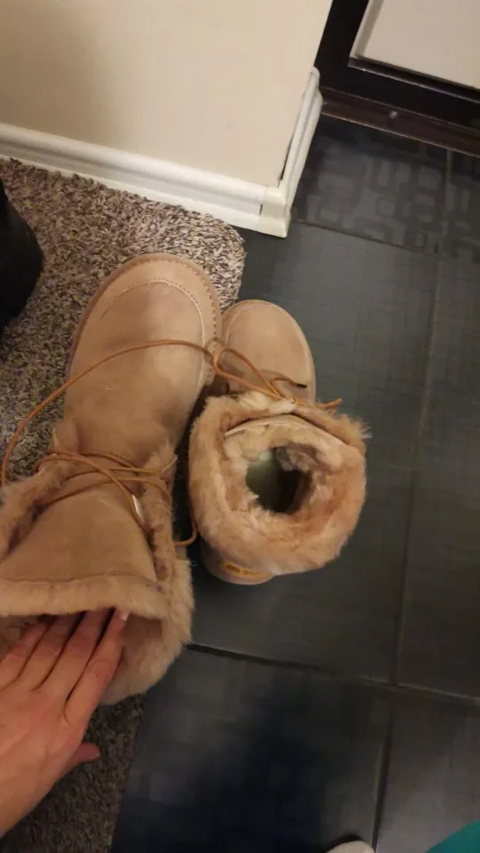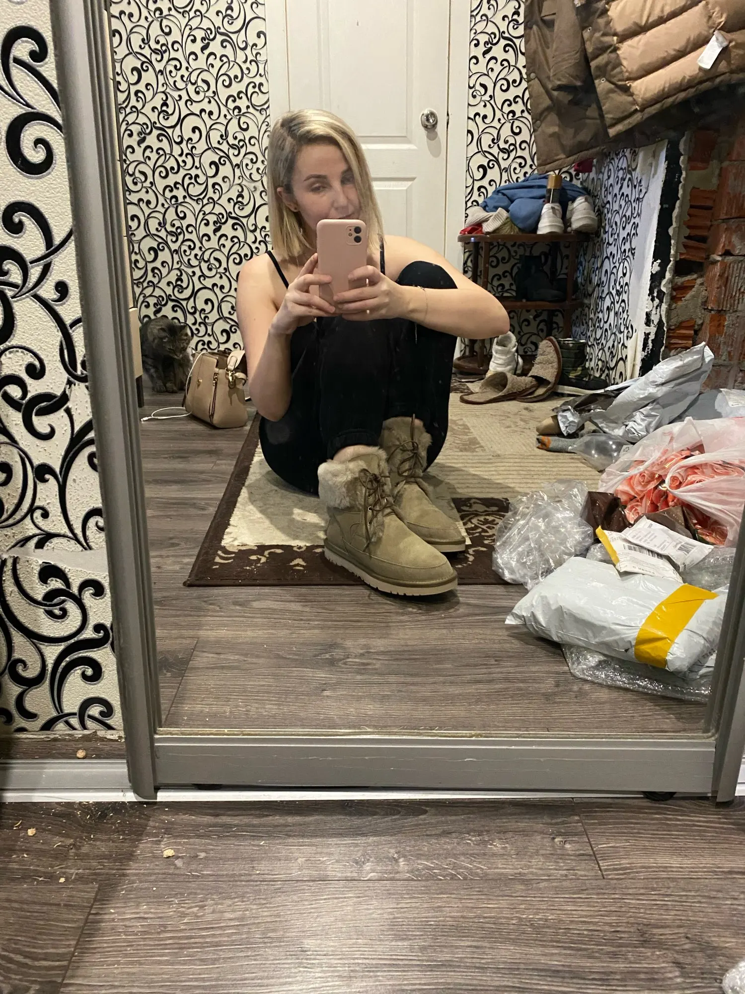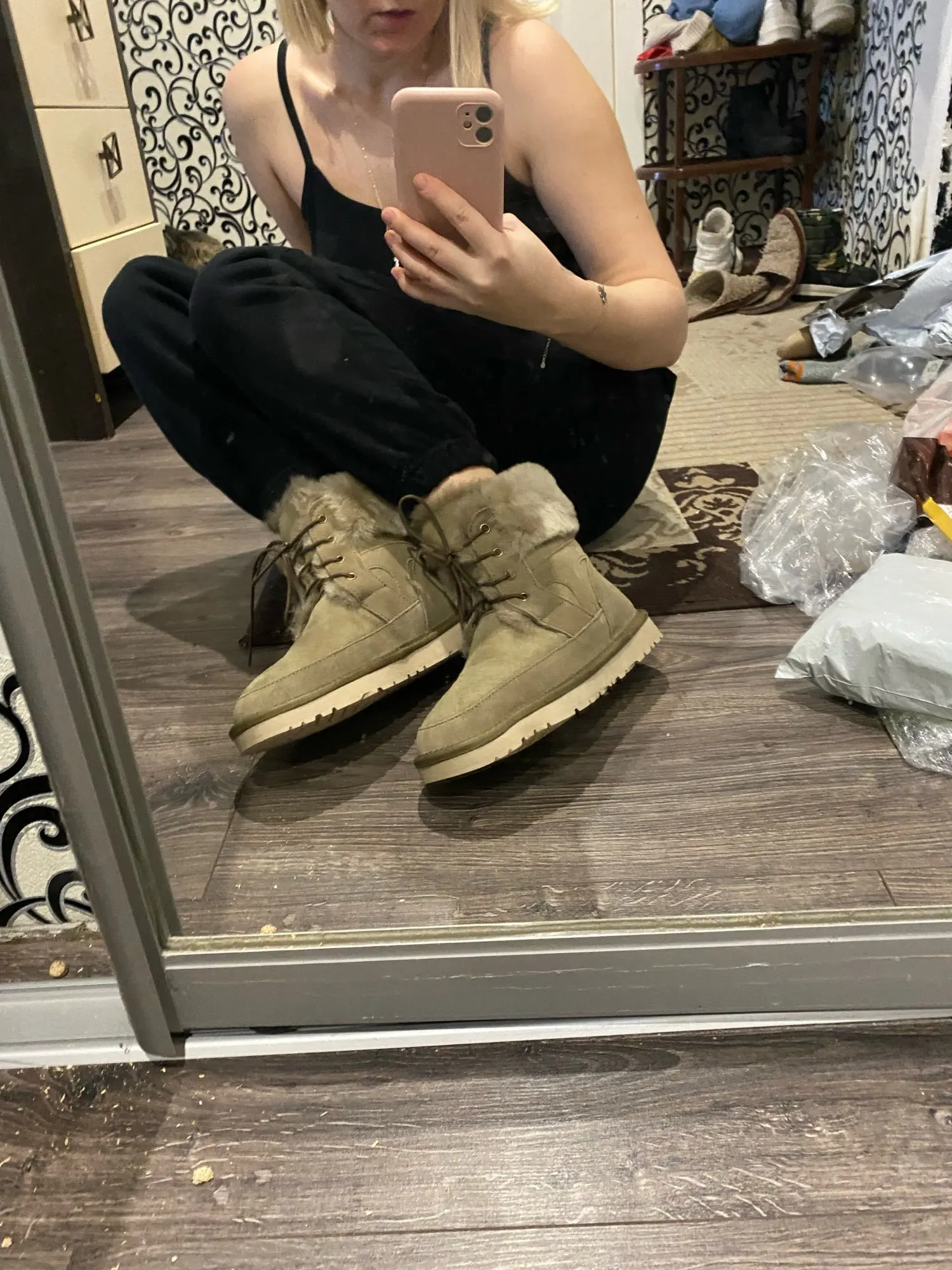 Угги такие как на фото продавца. Натуральные мягкие. Супер. Единственно после снега замша потемнела.