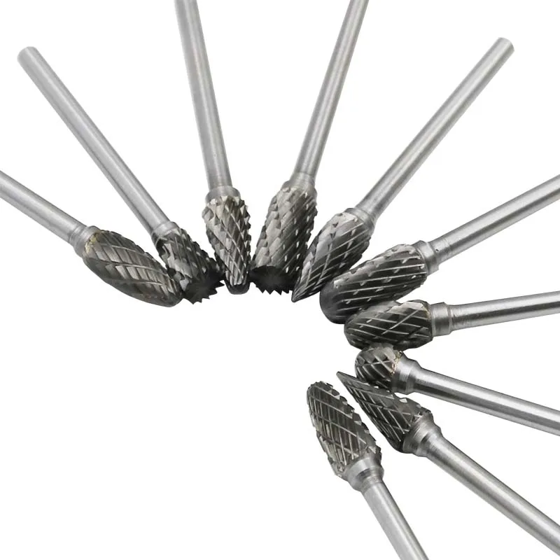 10 шт.компл. 3*6 мм двойной текст головки карбида вольфрама роторный инструмент точка заусенцы шлифовальный станок абразивные инструменты сверло фрезерование резьба бит