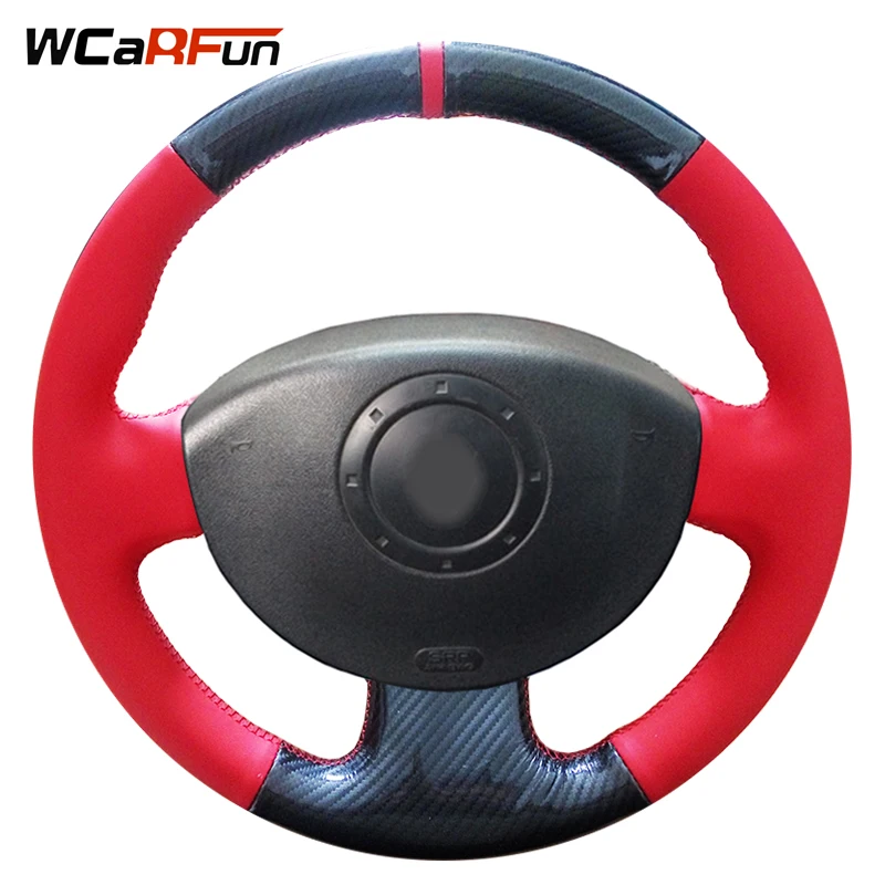 Красная кожаная маркерная чехол рулевого колеса автомобиля из углеродного волокна для Renault Megane 2 2003-2008 Kangoo Scenic 2 2003-2009