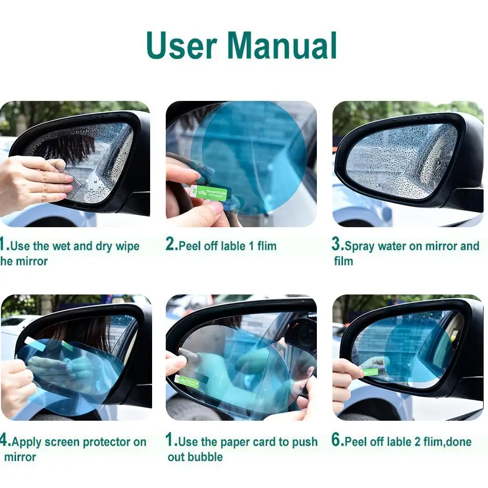 1. Защита и защита боковых зеркал заднего вида от воды, дождя, тумана, бликов, взрывов, чтобы сохранить ваше зеркало заднего вида чистым все время. Высокая прочность и высокий коэффициент пропускания. Держите водителей в безопасности от несчастных случаев в дождливую и туманную погоду.